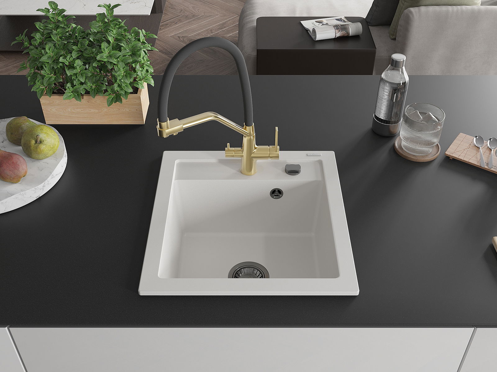 Dřez byl vyroben z vysoce kvalitního granitu. Představuje elegantní a především praktický doplněk každé kuchyně, bez ohledu na její styl. Vysoká kvalita a trvanlivost granitu zajišťují dlouholeté používání.
