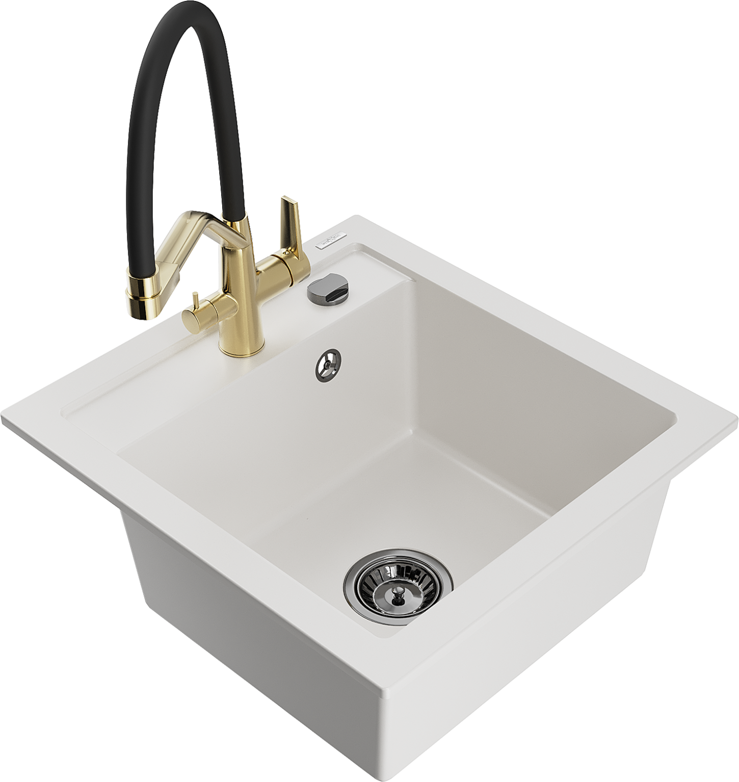 Mexen Vito granitový dřez 1-komorový s kuchyňskou baterií Duo, bílý - 6503-20-671701-57-B