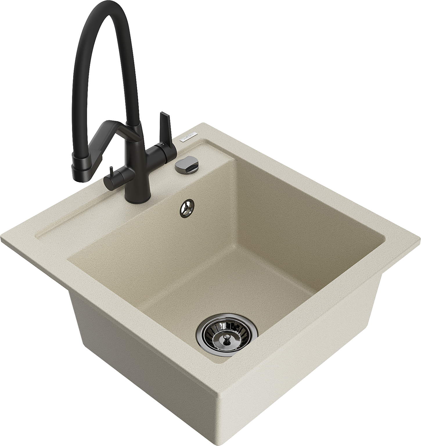 Mexen Vito žulový dřez s jednou komorou a kuchyňskou baterií Duo, béžový - 6503-69-671701-70-B