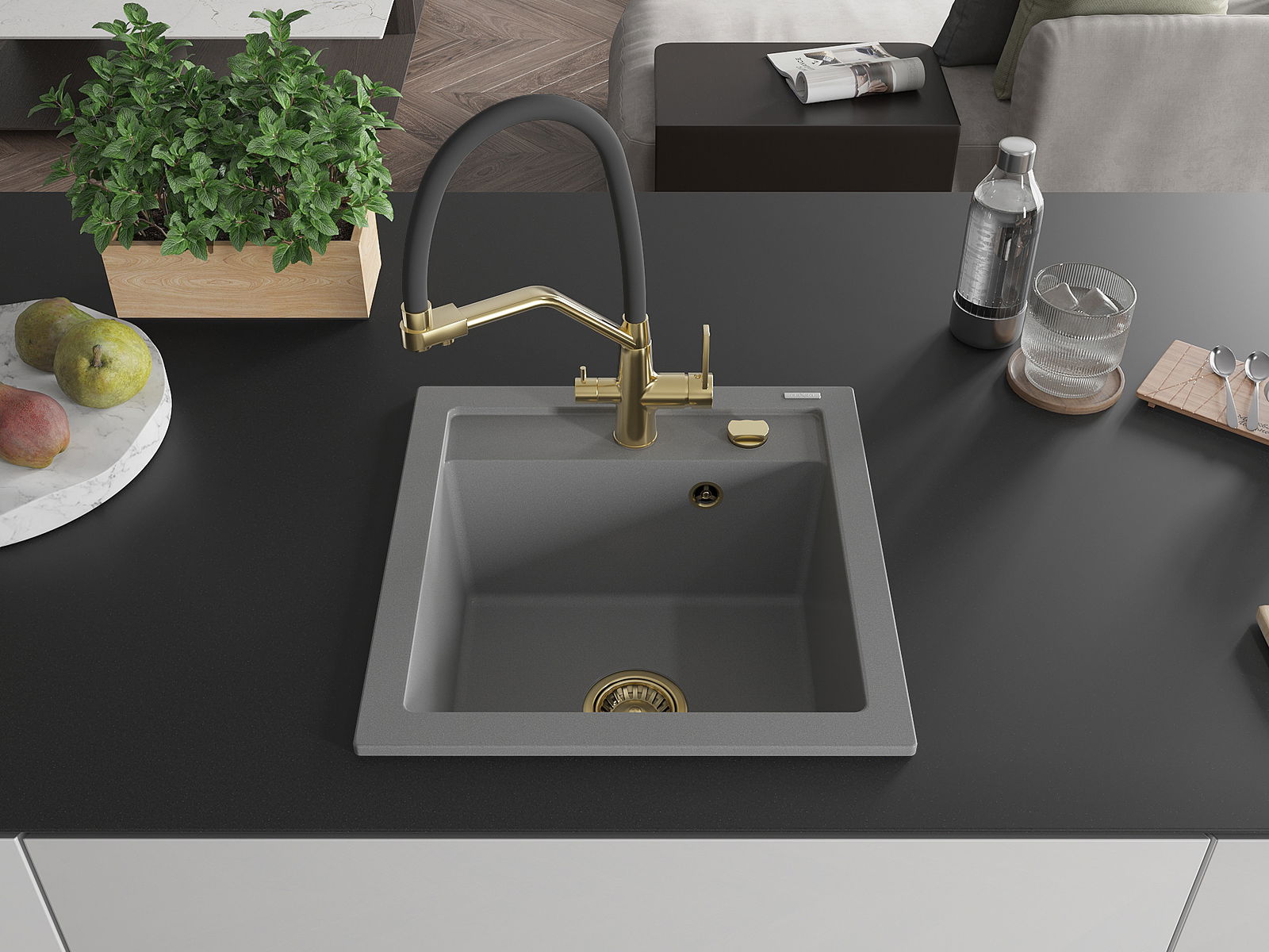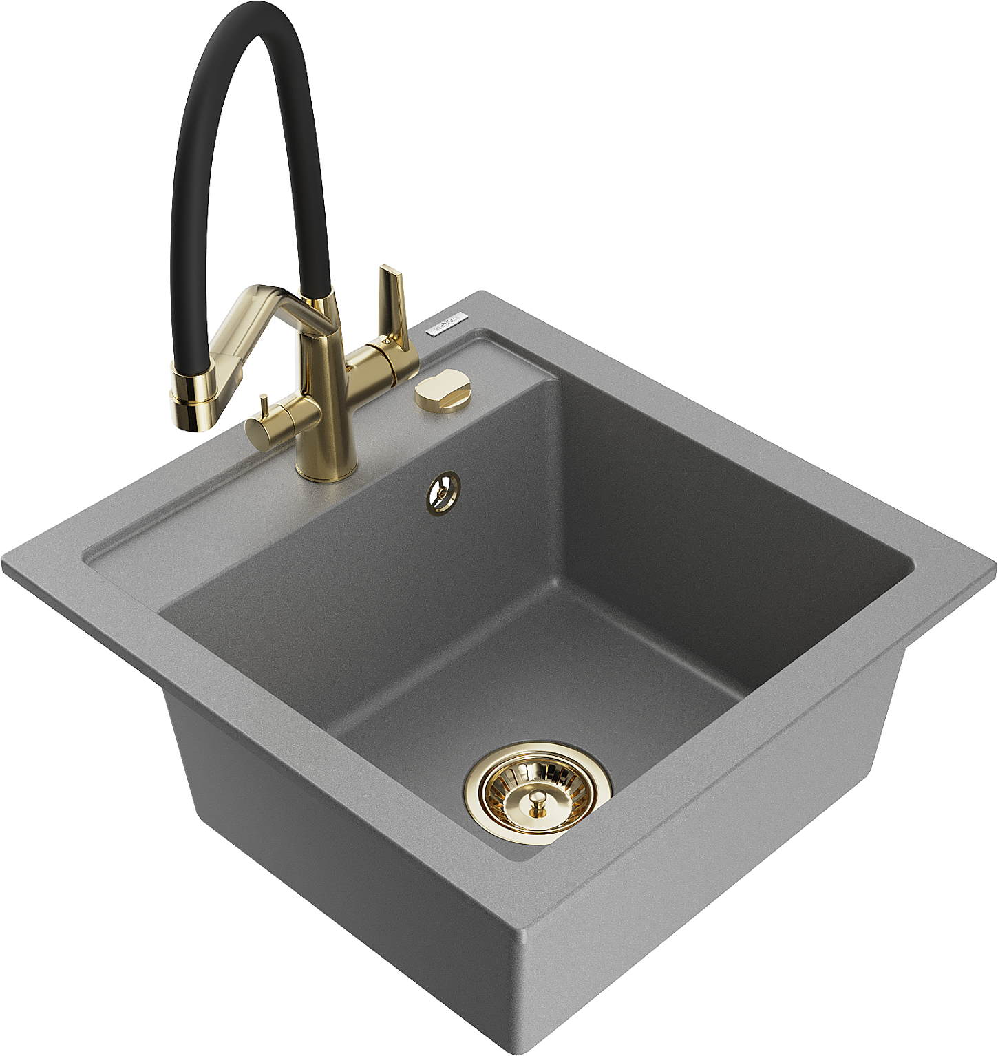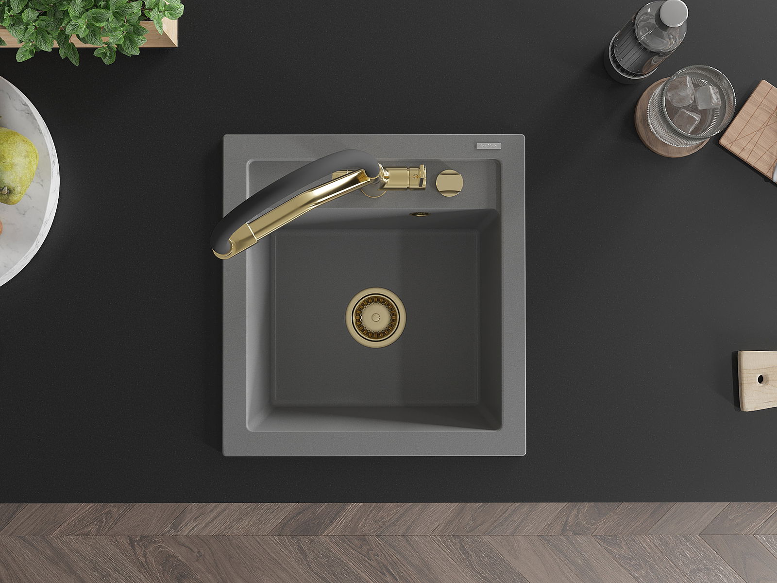 Mexen Vito granitový dřez s 1 komorou a kuchyňskou baterií Duo, šedý - 6503-71-671701-57-G