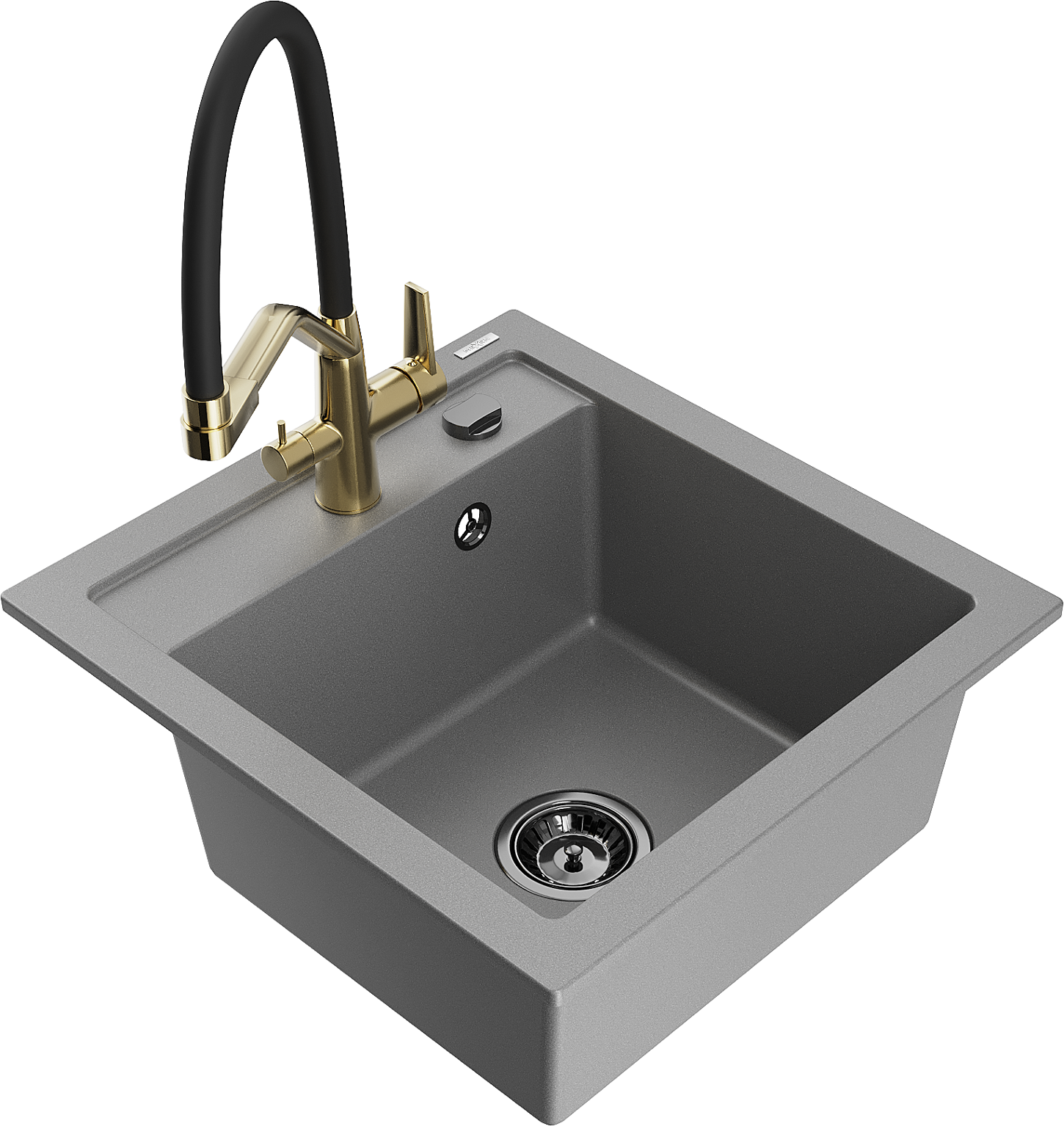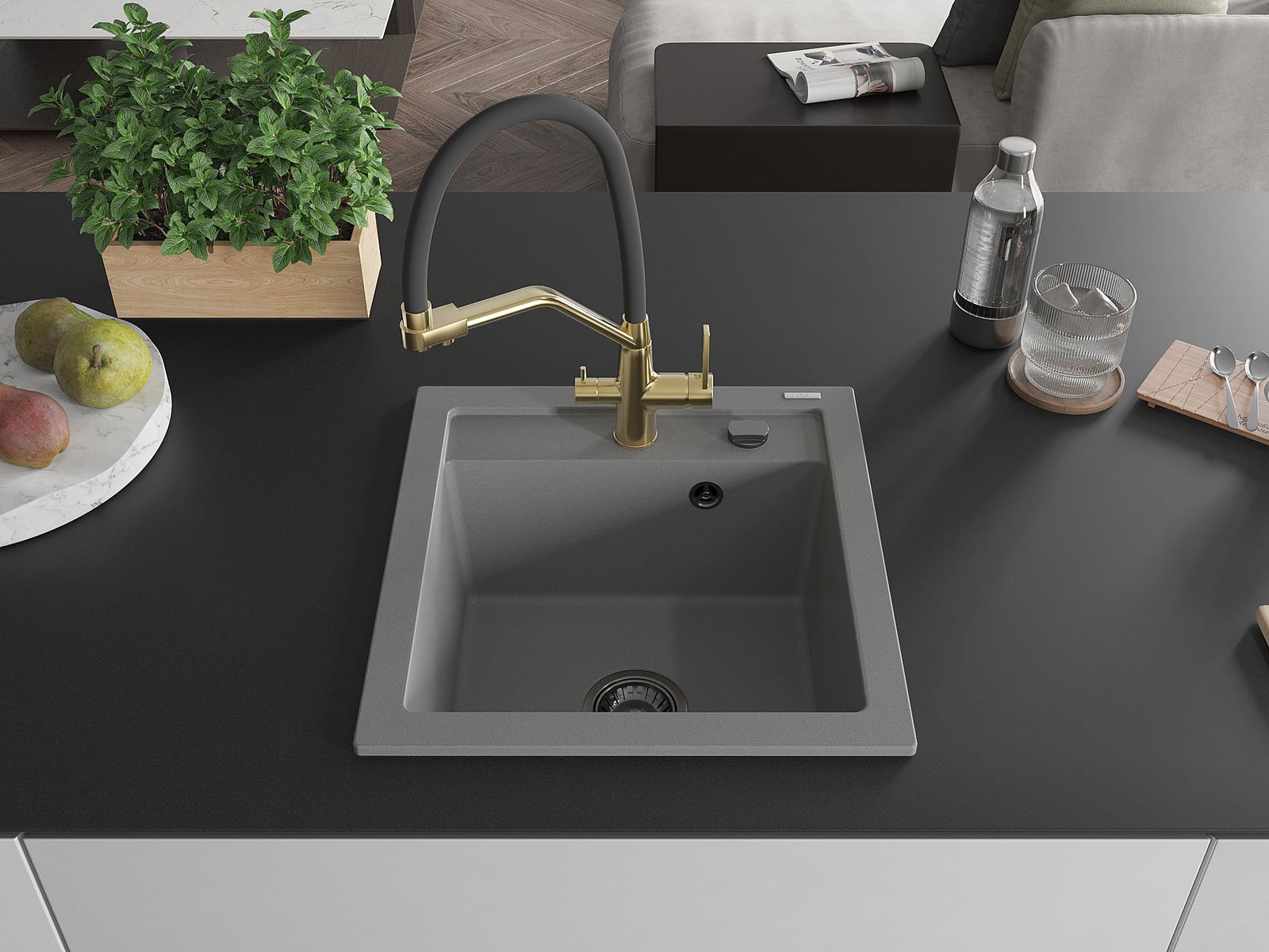 Mexen Vito žulový dřez s 1 komorou a kuchyňskou baterií Duo, šedý - 6503-71-671701-57-B