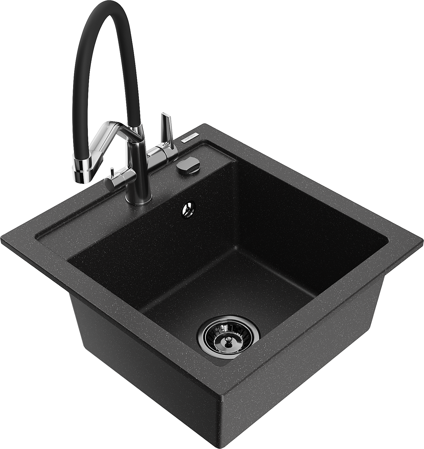 Mexen Vito granitový dřez s 1 komorou a kuchyňskou baterií Duo, černý/stříbrný metalik - 6503-73-671701-07-B
