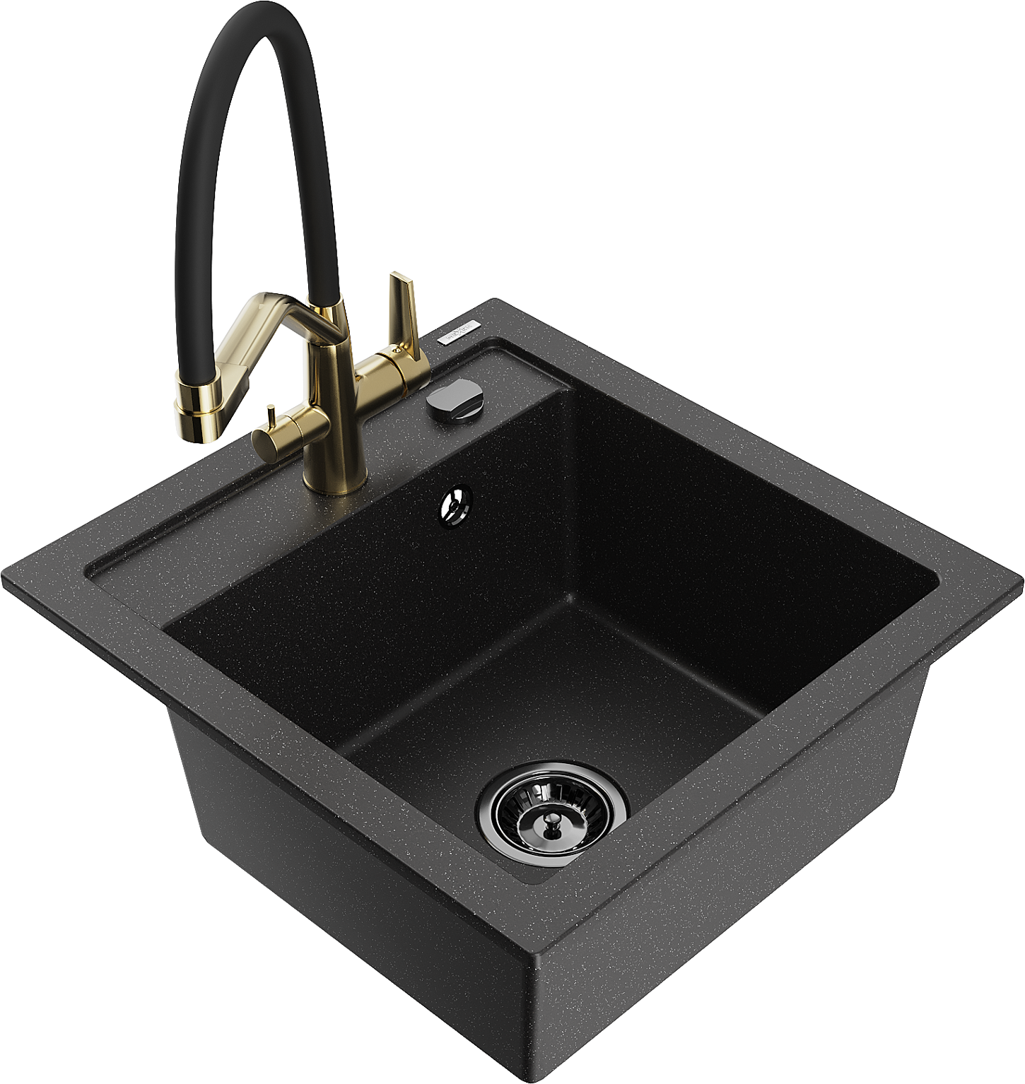 Mexen Vito granitový dřez s 1 komorou a kuchyňskou baterií Duo, černý/stříbrný metalík - 6503-73-671701-57-B