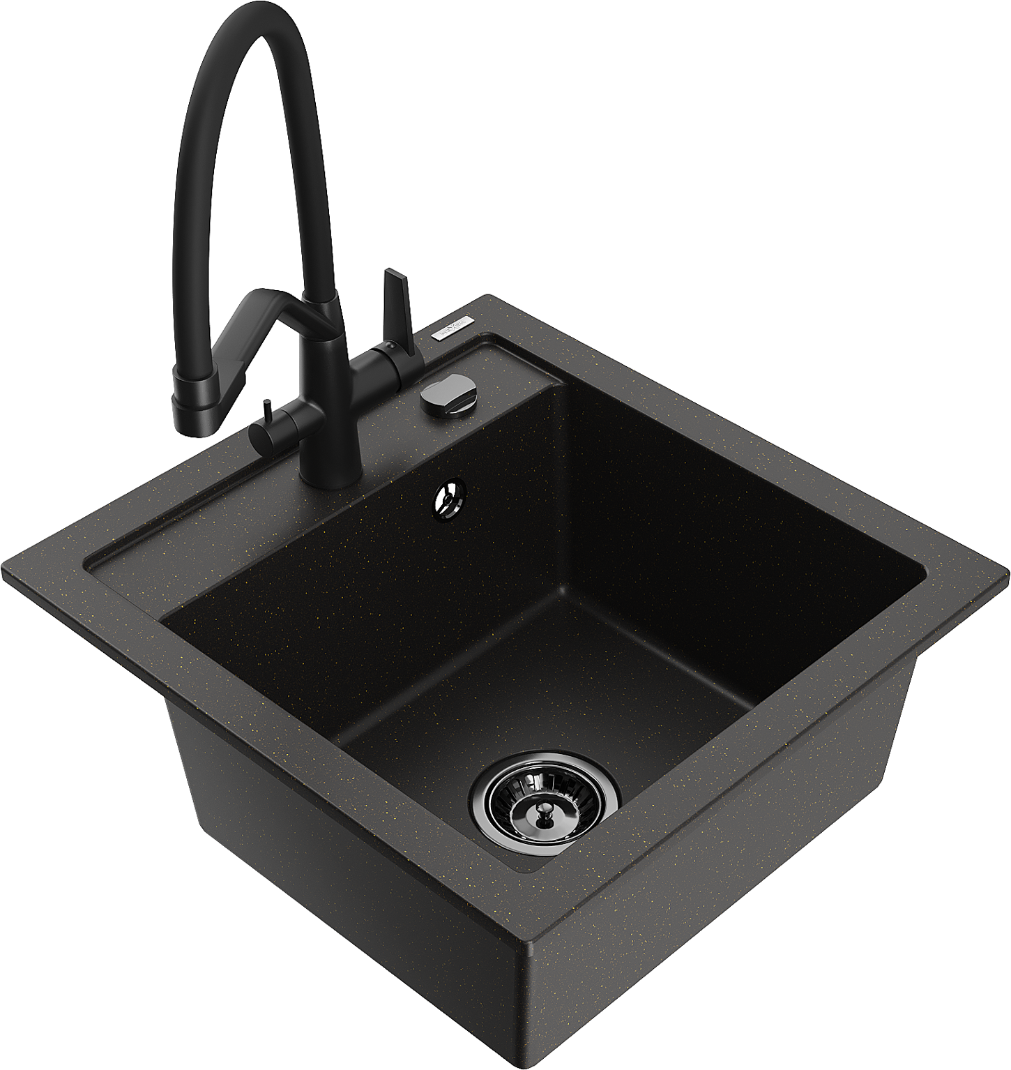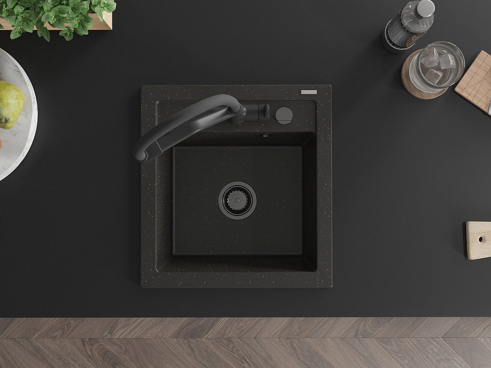 Mexen Vito granitový kuchyňský dřez 1-komorový s kuchyňskou baterií Duo, černý/zlatý metalik - 6503-75-671701-70-B