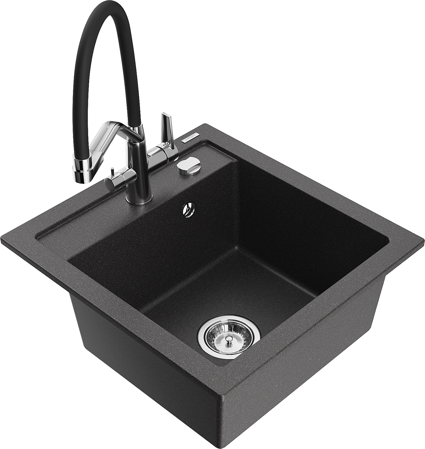 Mexen Vito granitový dřez 1-komorový s kuchyňskou baterií Duo, černý s tečkami - 6503-76-671701-07