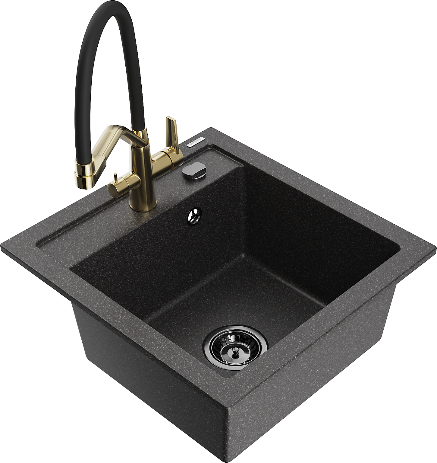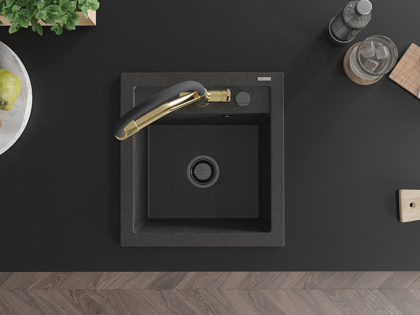 Mexen Vito granitový dřez 1-komorový s kuchyňskou baterií Duo, černý s bodkami - 6503-76-671701-57-B
