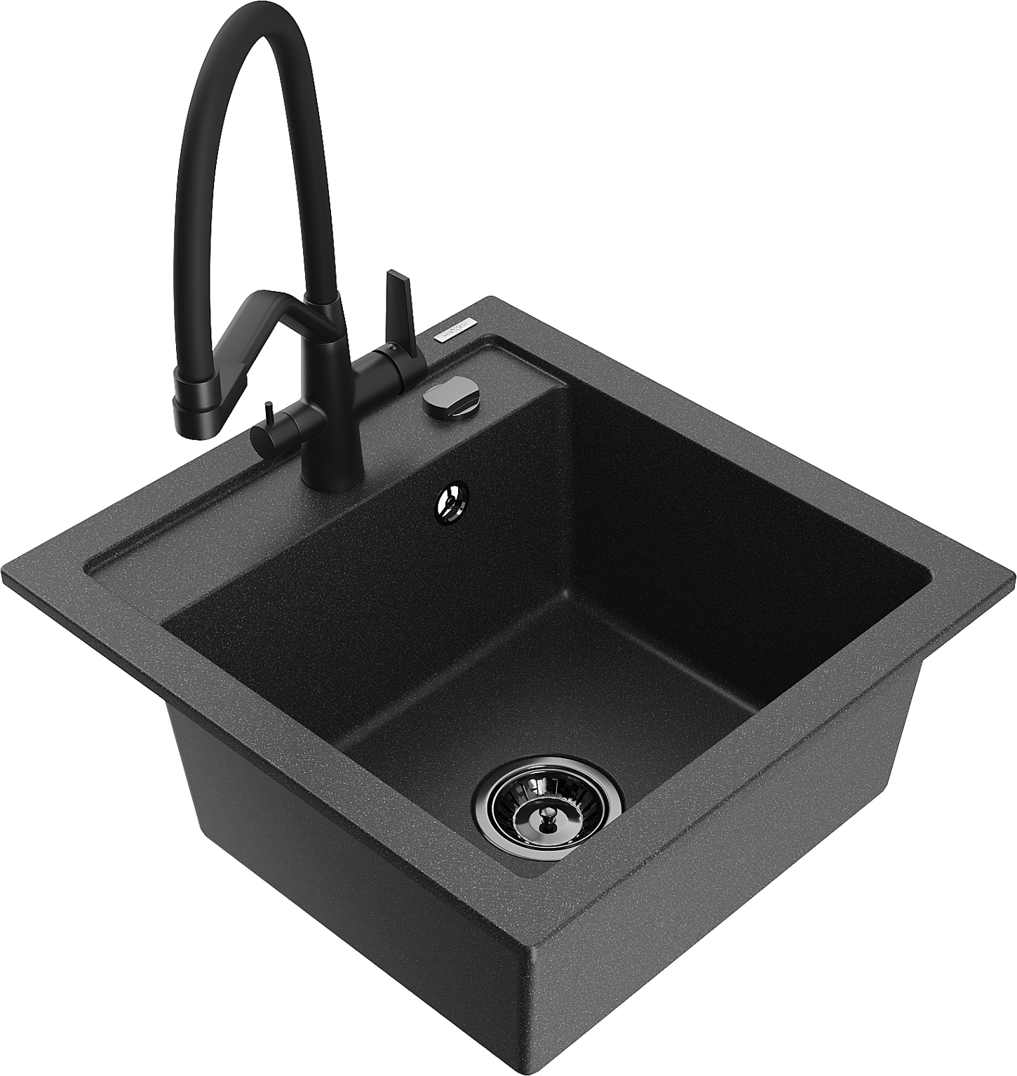 Mexen Vito granitový dřez s 1 komorou s kuchyňskou baterií Duo, černý s tečkami - 6503-76-671701-70-B