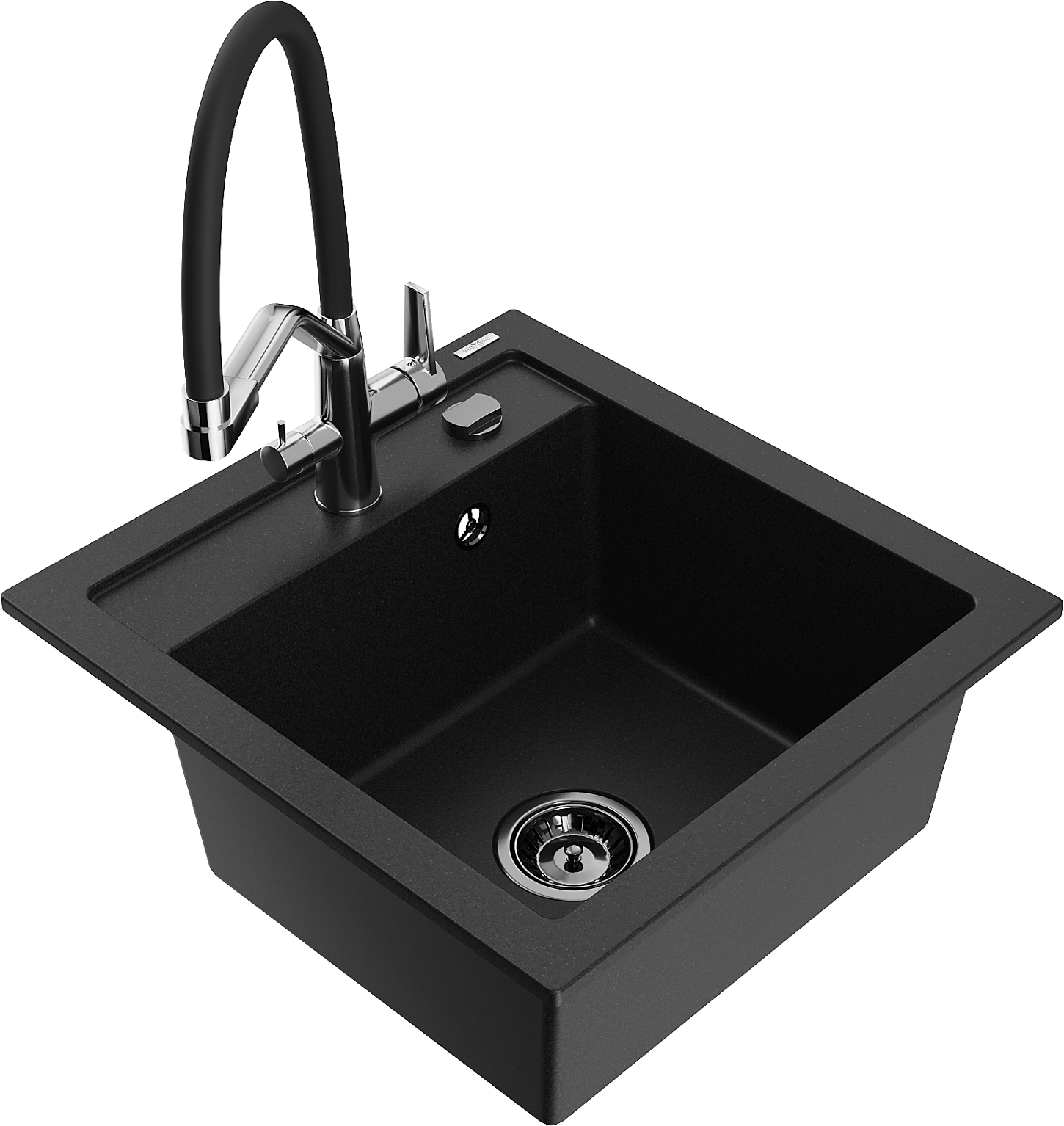 Mexen Vito granitový dřez s 1 komorou a kuchyňskou baterií Duo, černý - 6503-77-671701-07-B