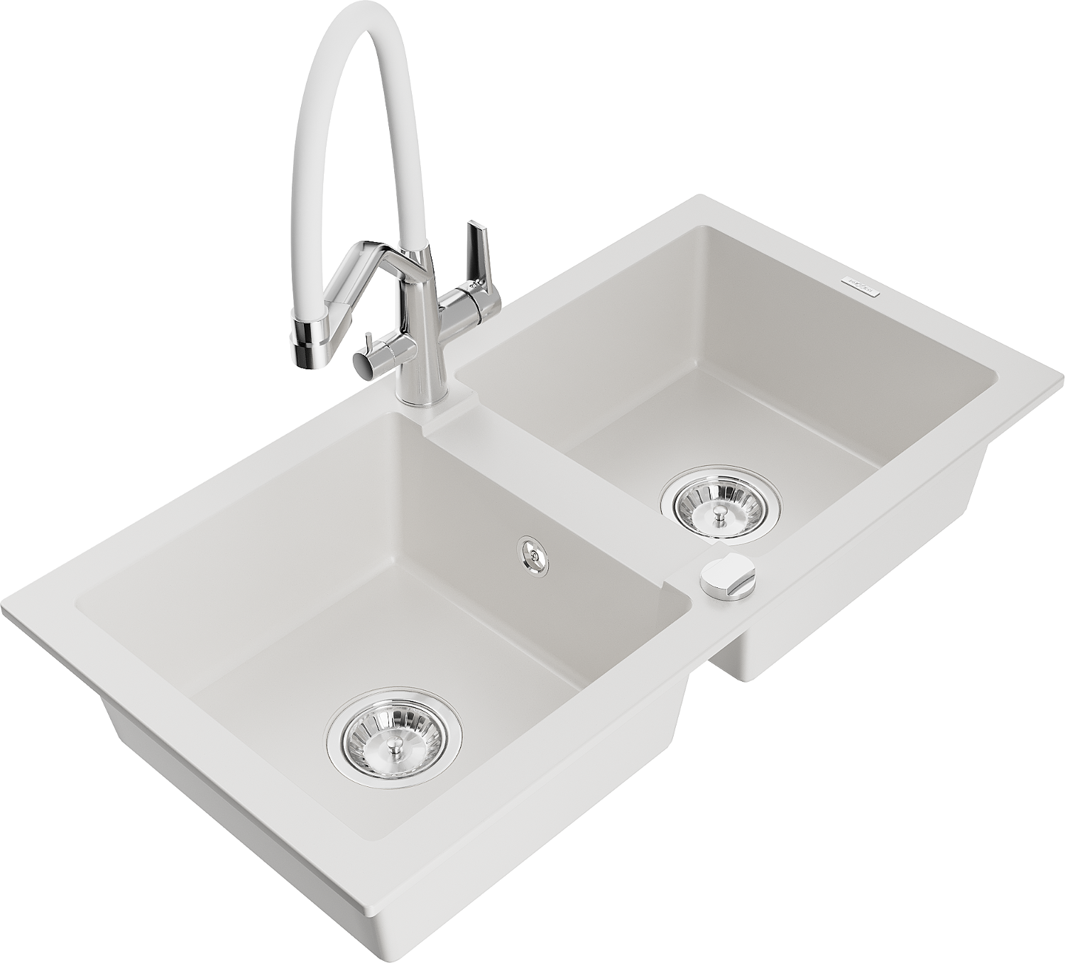 Mexen Mario dřez granitový 2-komorový s kuchyňskou baterií Duo, bílý - 6504-20-671701-02