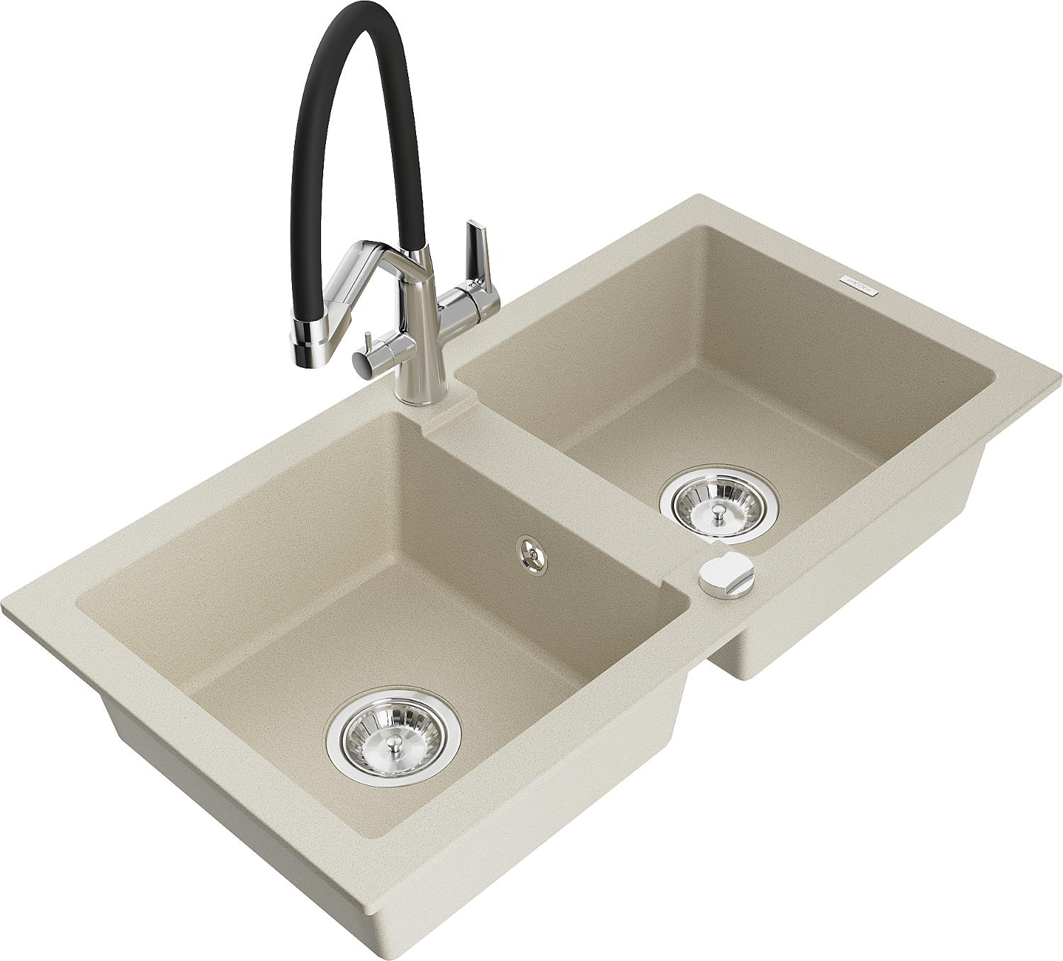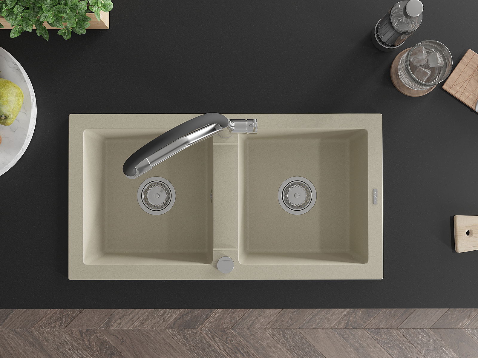 Mexen Mario granitový dřez 2-komorový s kuchyňskou baterií Duo, béžový - 6504-69-671701-07