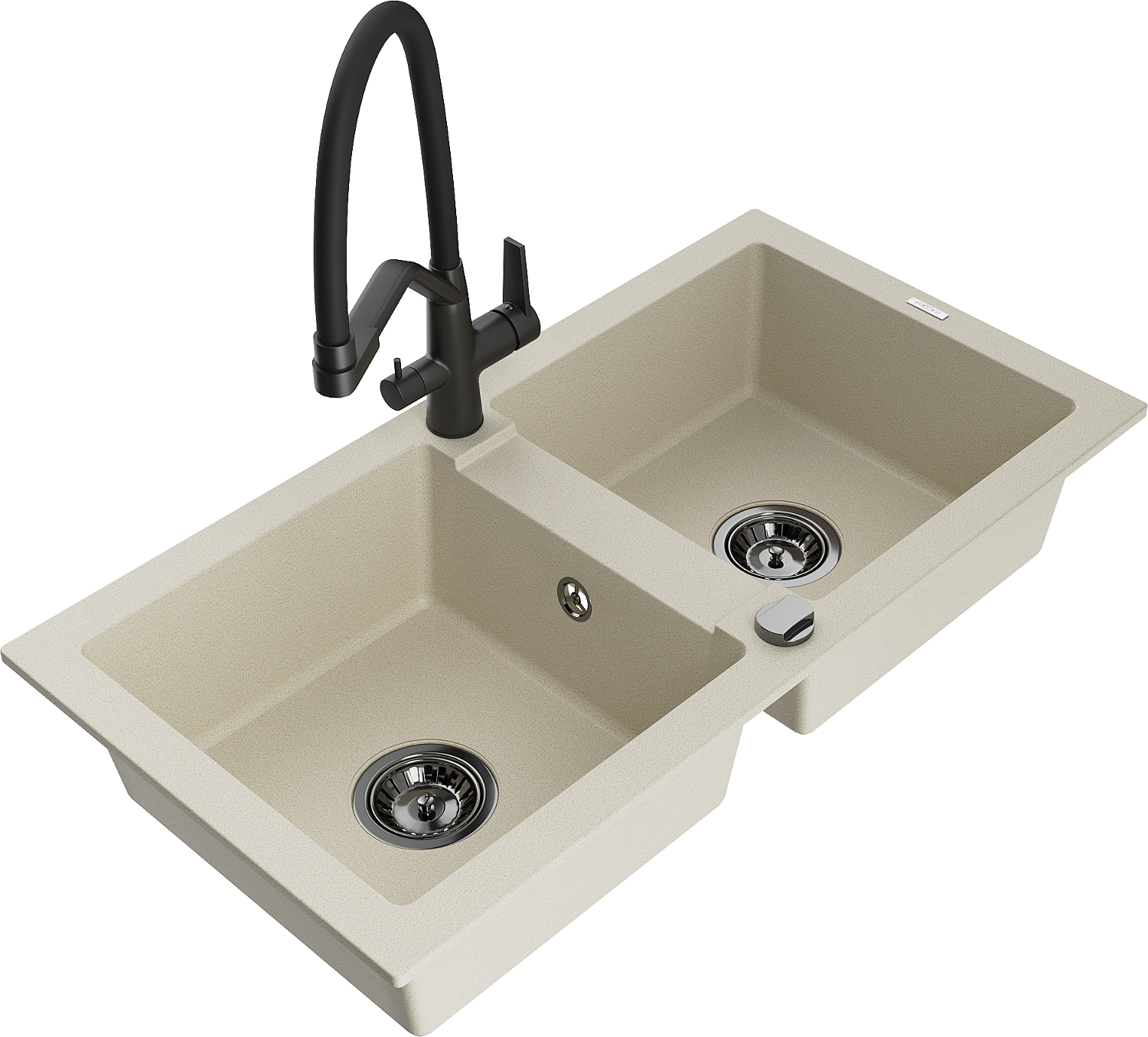 Mexen Mario žulový dřez 2-komorový s kuchyňskou baterií Duo, béžový - 6504-69-671701-70-B