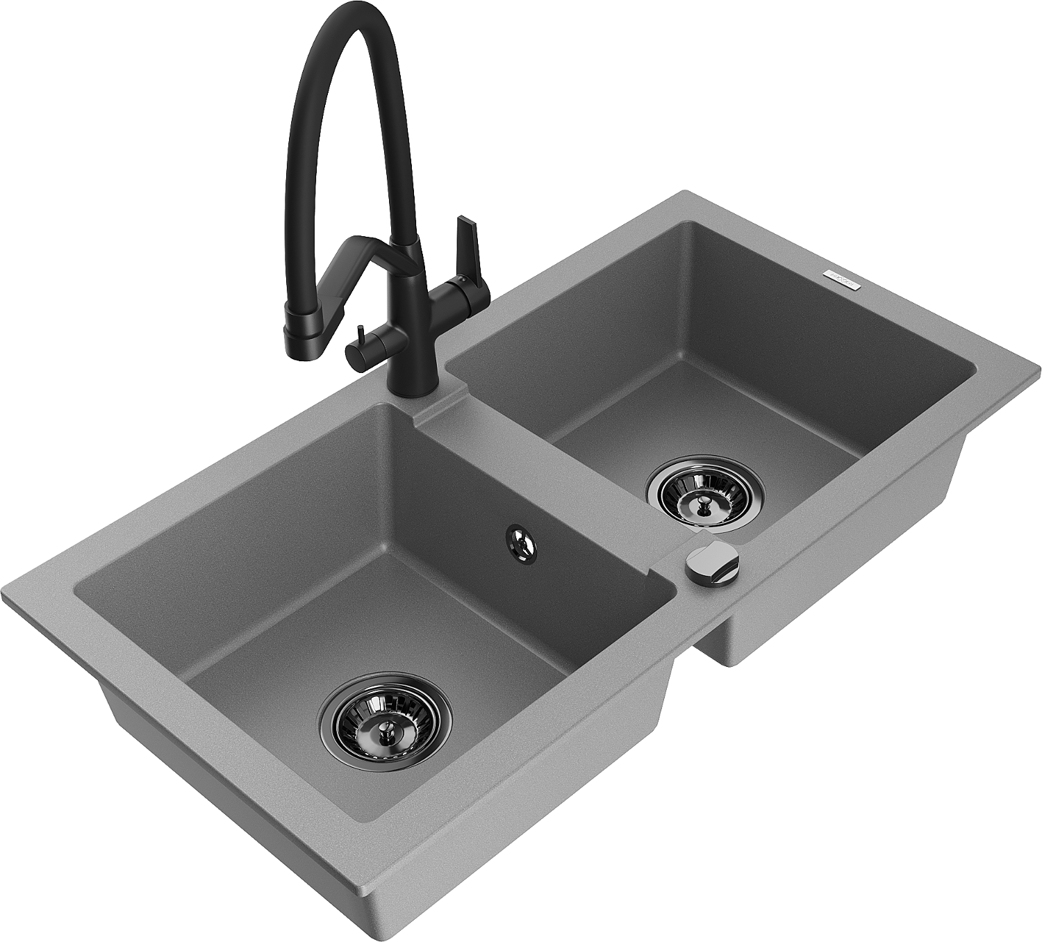 Mexen Mario granitový dřez 2-komorový s kuchyňskou baterií Duo, šedý - 6504-71-671701-70-B