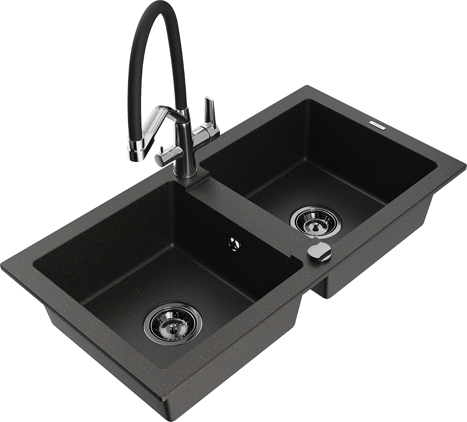 Mexen Mario žulový dřez 2-komorový s kuchyňskou baterií Duo, černý/zlatý metalik - 6504-75-671701-07-B