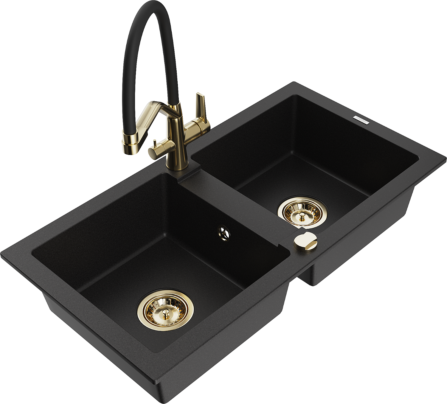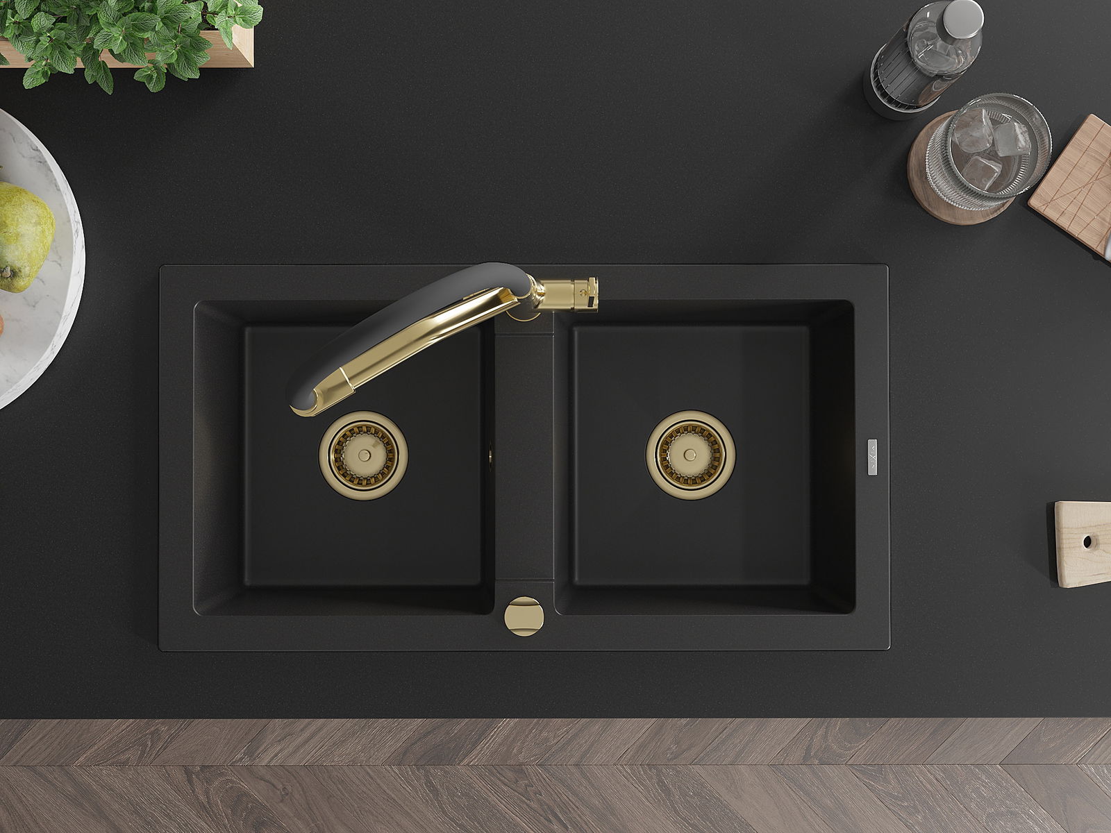 Mexen Mario granitový dřez 2-komorový s kuchyňskou baterií Duo, černý - 6504-77-671701-57-G