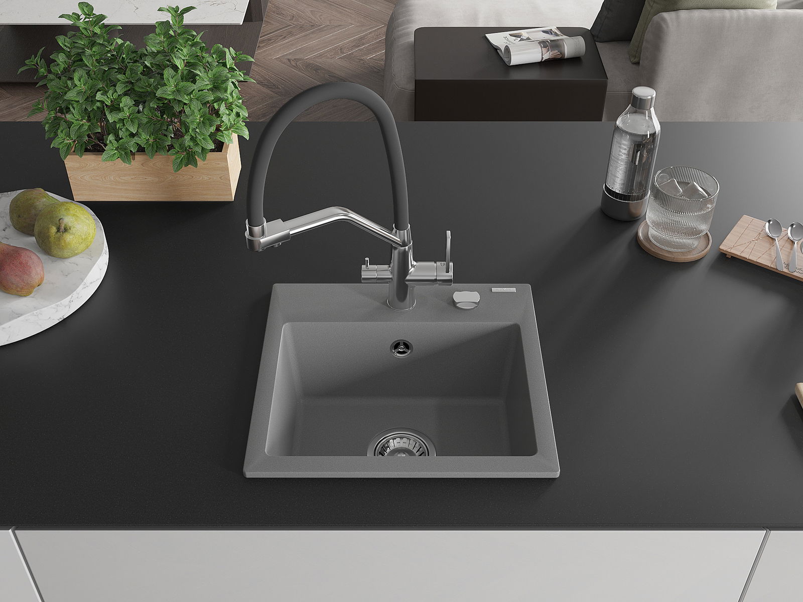 Mexen Milo granitový dřez 1-komorový s kuchyňskou baterií Duo, šedý - 6505-71-671701-07
