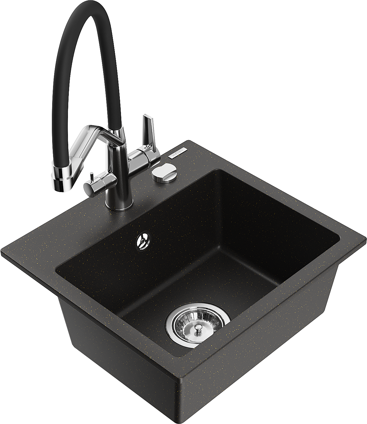 Mexen Milo granitový dřez 1-komorový s kuchyňskou baterií Duo, černý/zlatý metalík - 6505-75-671701-07