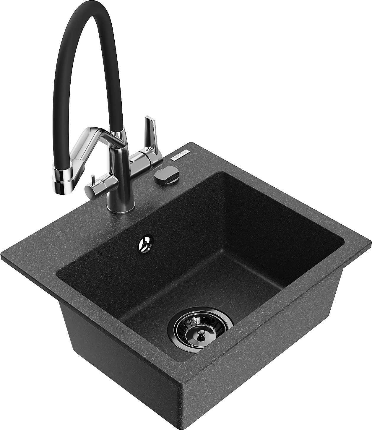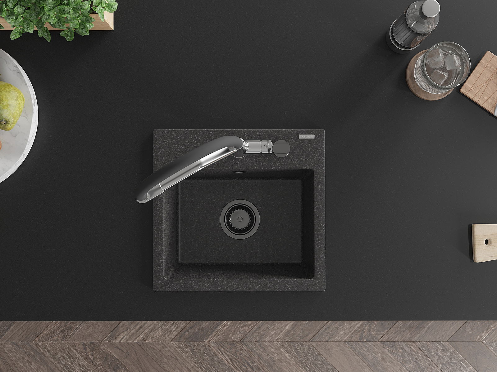 Mexen Milo granitový dřez 1-komorový s kuchyňskou baterií Duo, černý s tečkami - 6505-76-671701-07-B