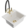 Povrch dřezu je odolný proti skvrnám a zabarvení, což usnadňuje jeho čištění a zachovává jeho barvu po dlouhou dobu používání. Estetický a praktický doplněk každé kuchyně.