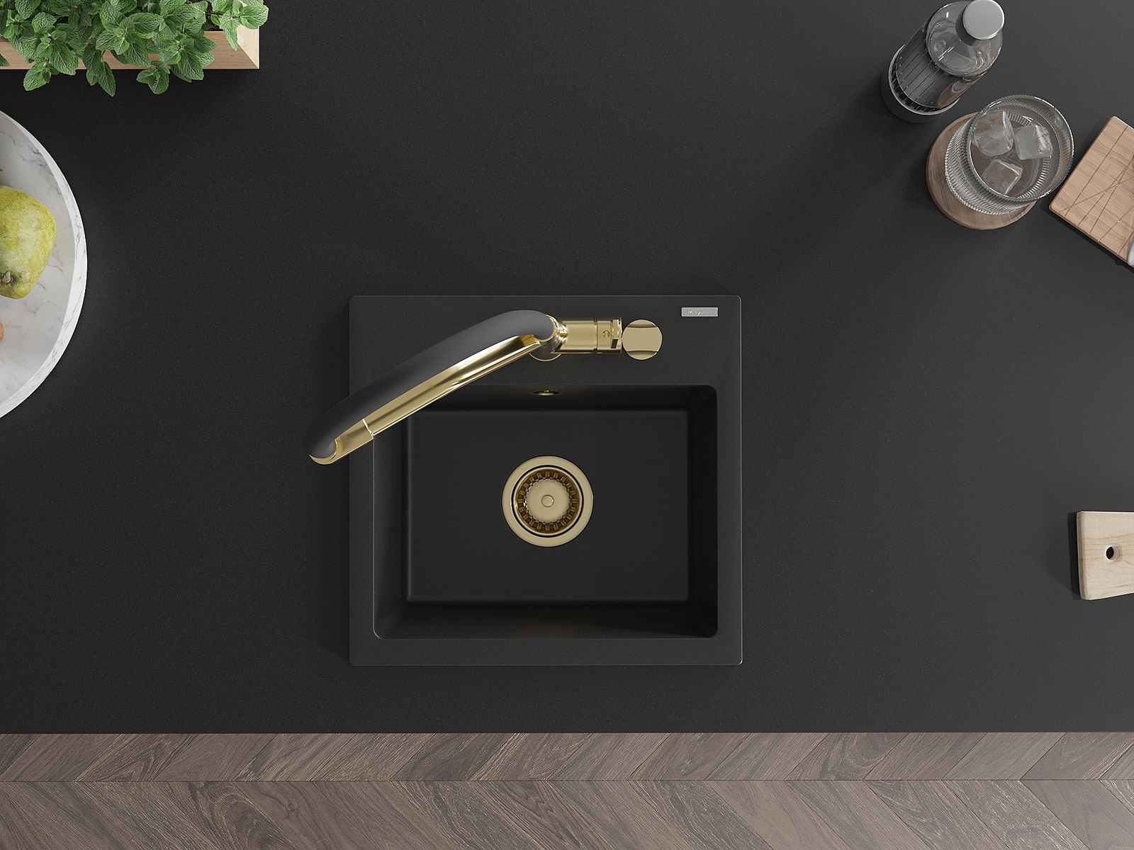 Dřez má předfrézovaný otvor o průměru 35 mm k samostatnému proražení. Může být použit například k montáži dávkovače na tekutinu, který eliminuje přítomnost plastových lahví v kuchyni a dodá jí elegantní finiš.