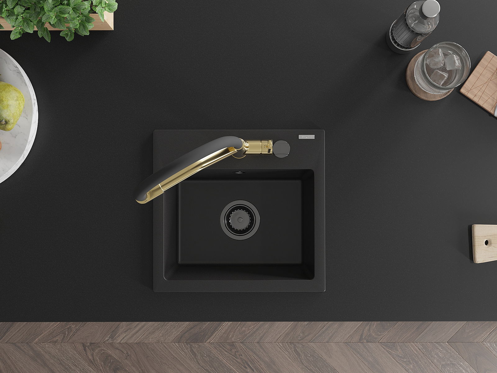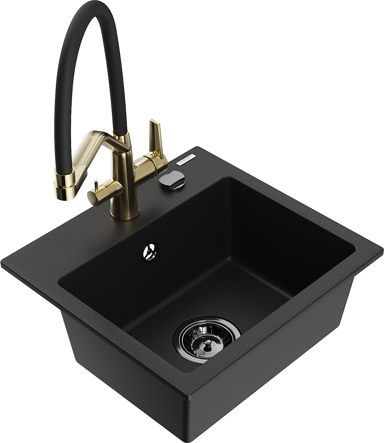Mexen Milo granitový dřez s 1 komorou a kuchyňskou baterií Duo, černý - 6505-77-671701-57-B