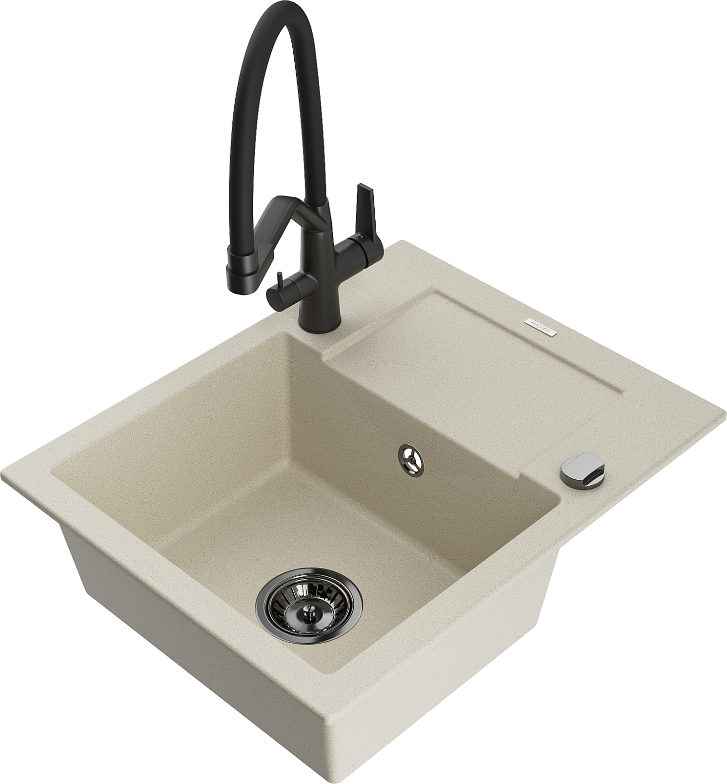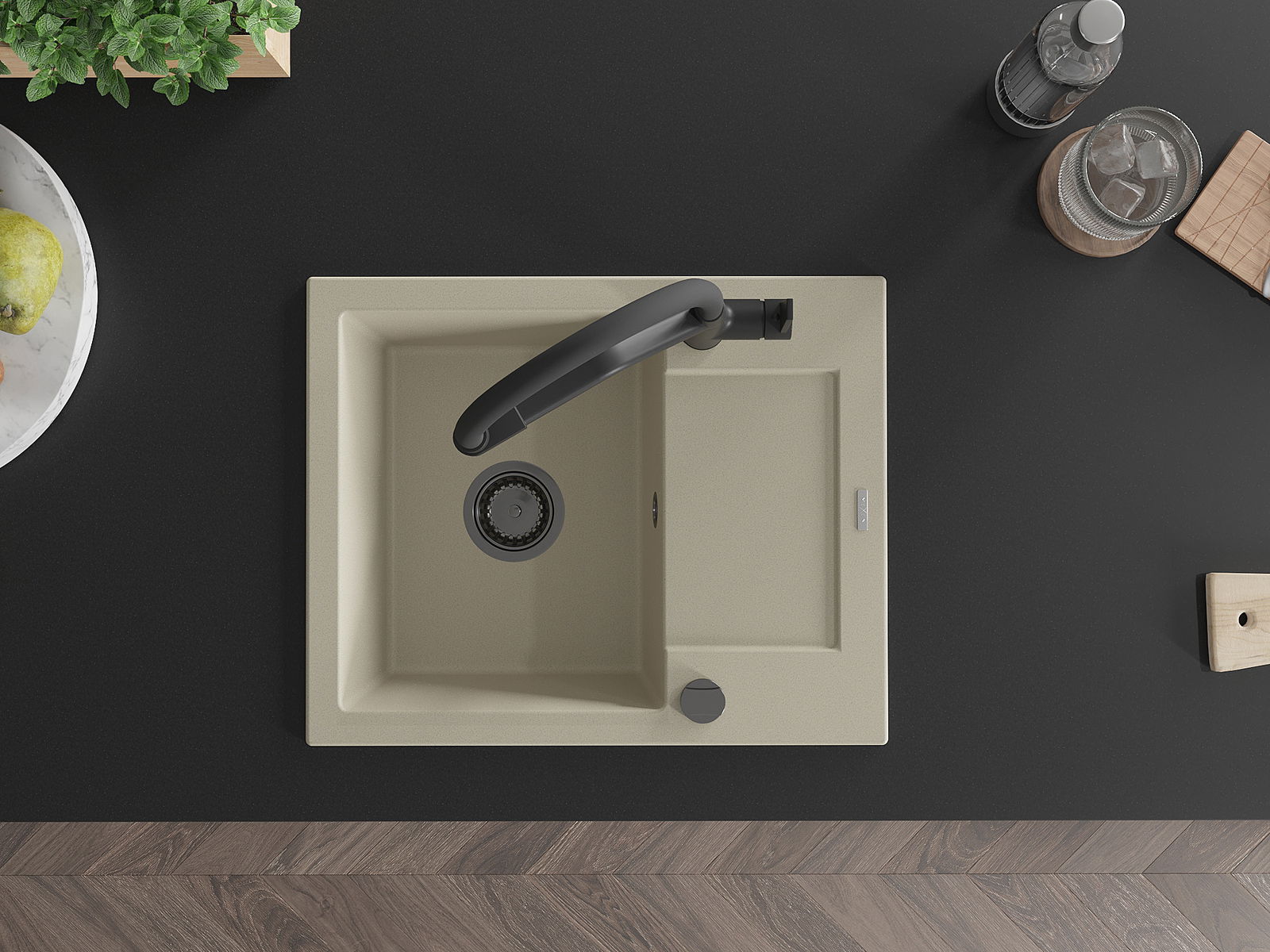 Mexen Enzo granitový dřez 1-komorový s odkapávačem a kuchyňskou baterií Duo, béžový - 6506-69-671701-70-B