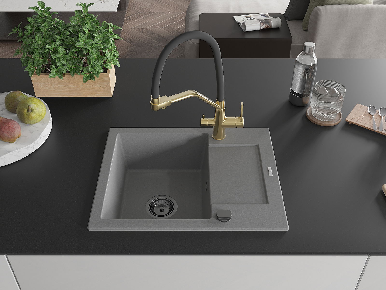 Dřez byl vyroben z vysoce kvalitního granitu. Představuje elegantní a především praktický doplněk každé kuchyně, bez ohledu na její styl. Vysoká kvalita a trvanlivost granitu zajišťují dlouholeté používání.