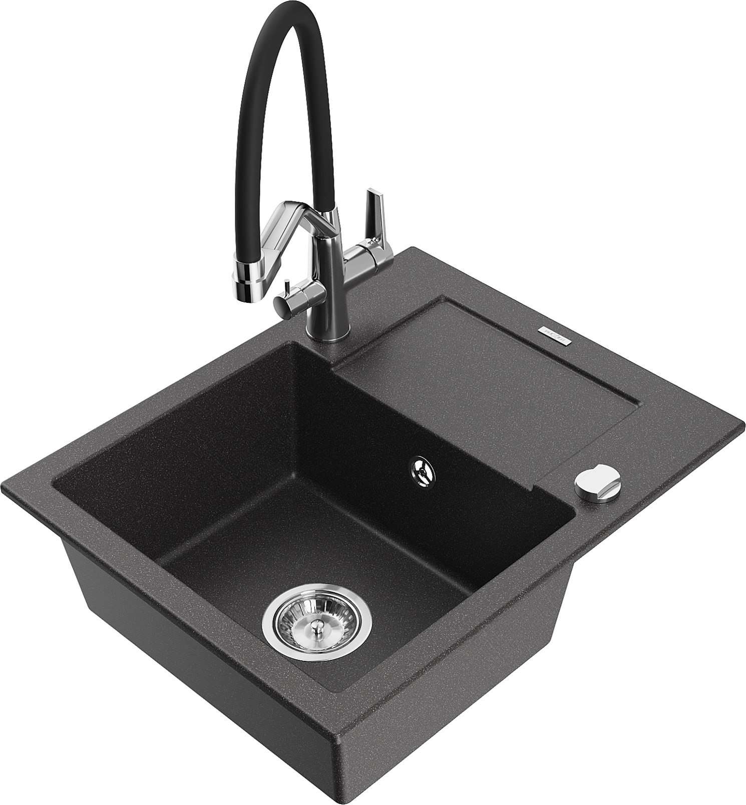 Mexen Enzo granitový dřez 1-komorový s odkapávačem a kuchyňskou baterií Duo, černý skvrnitý - 6506-76-671701-07