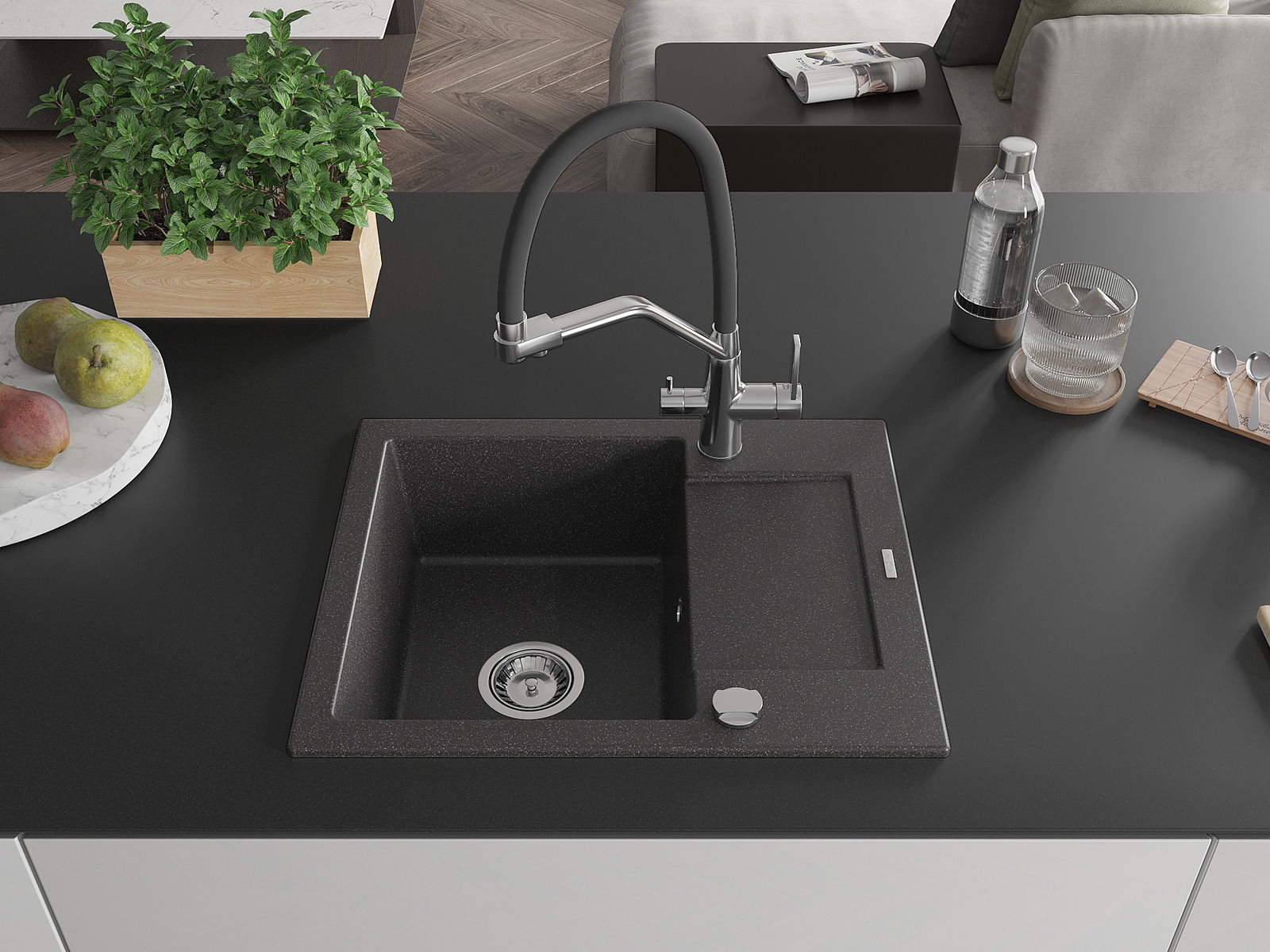 Dřez byl vyroben z vysoce kvalitního granitu. Představuje elegantní a především praktický doplněk každé kuchyně, bez ohledu na její styl. Vysoká kvalita a trvanlivost granitu zajišťují dlouholeté používání.