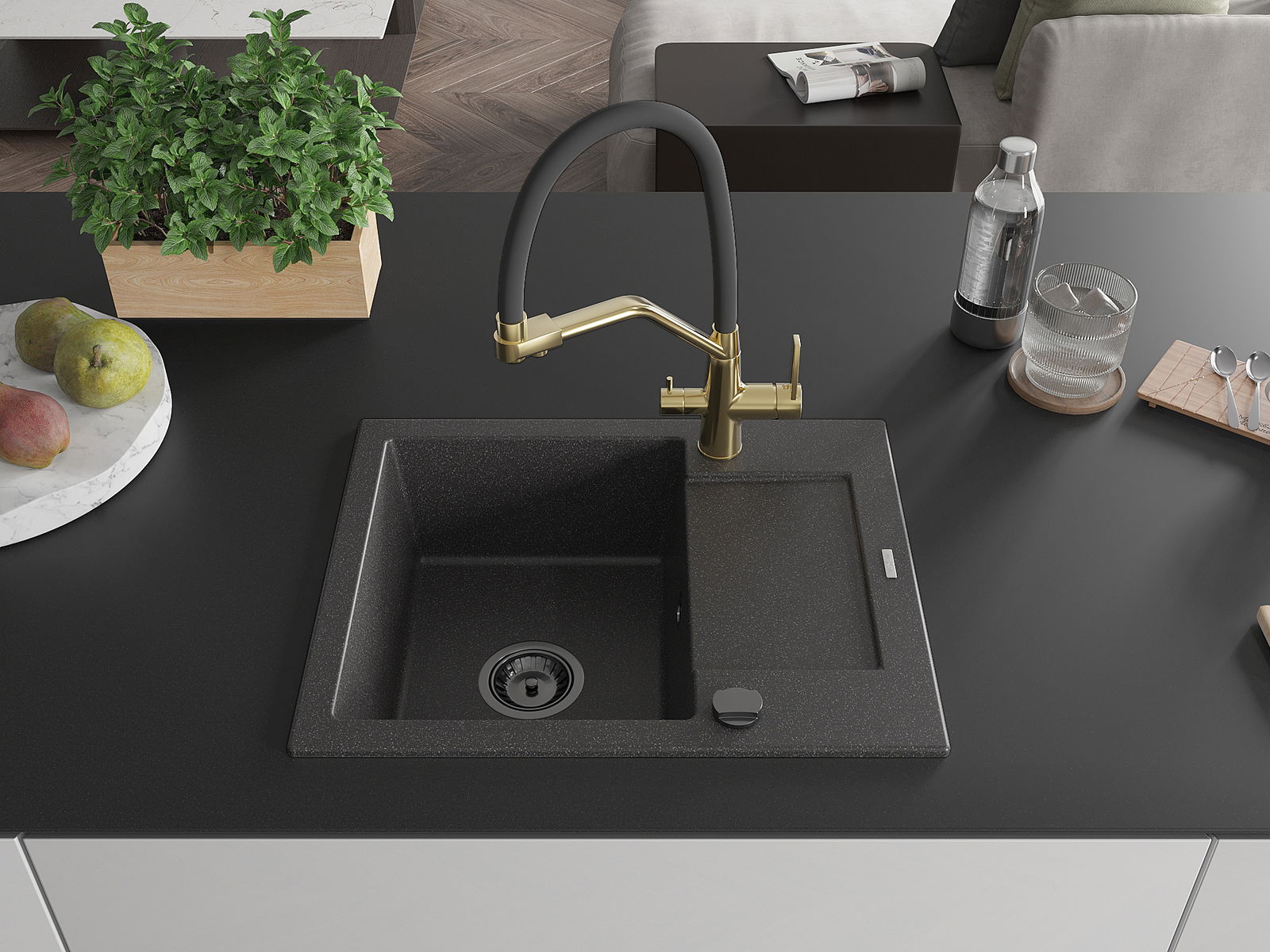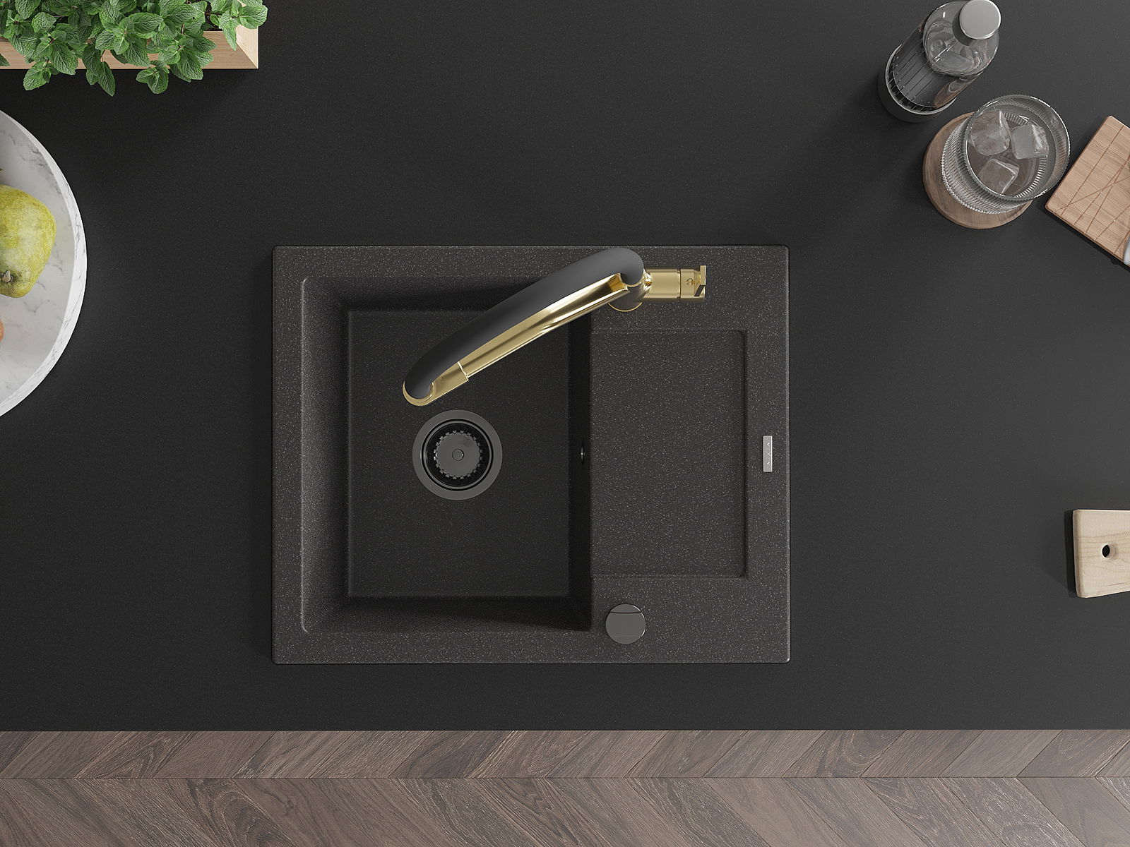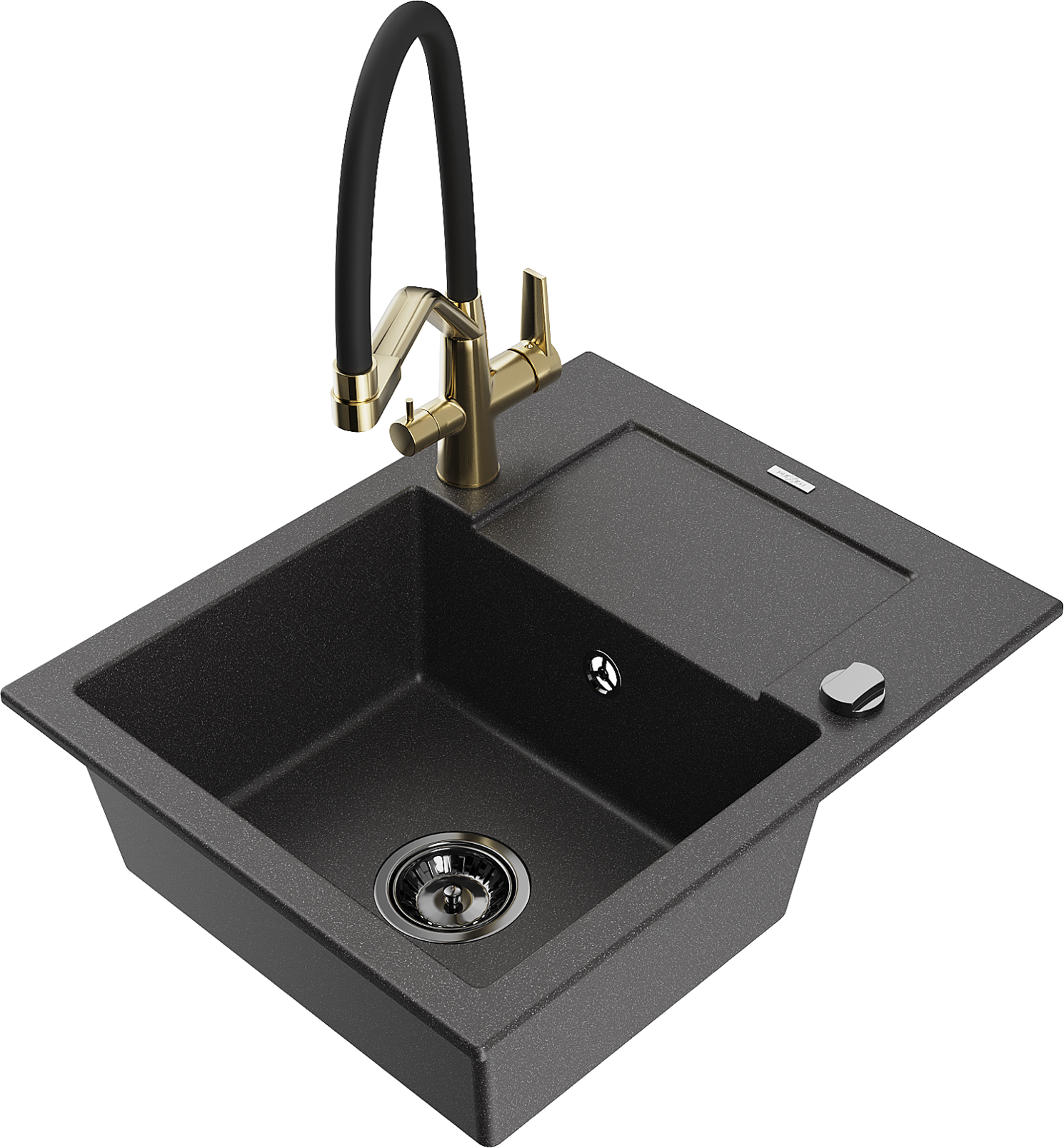 Mexen Enzo dřez granitový 1-komorový s odkapávačem a kuchyňskou baterií Duo, černý stříkaný - 6506-76-671701-57-B