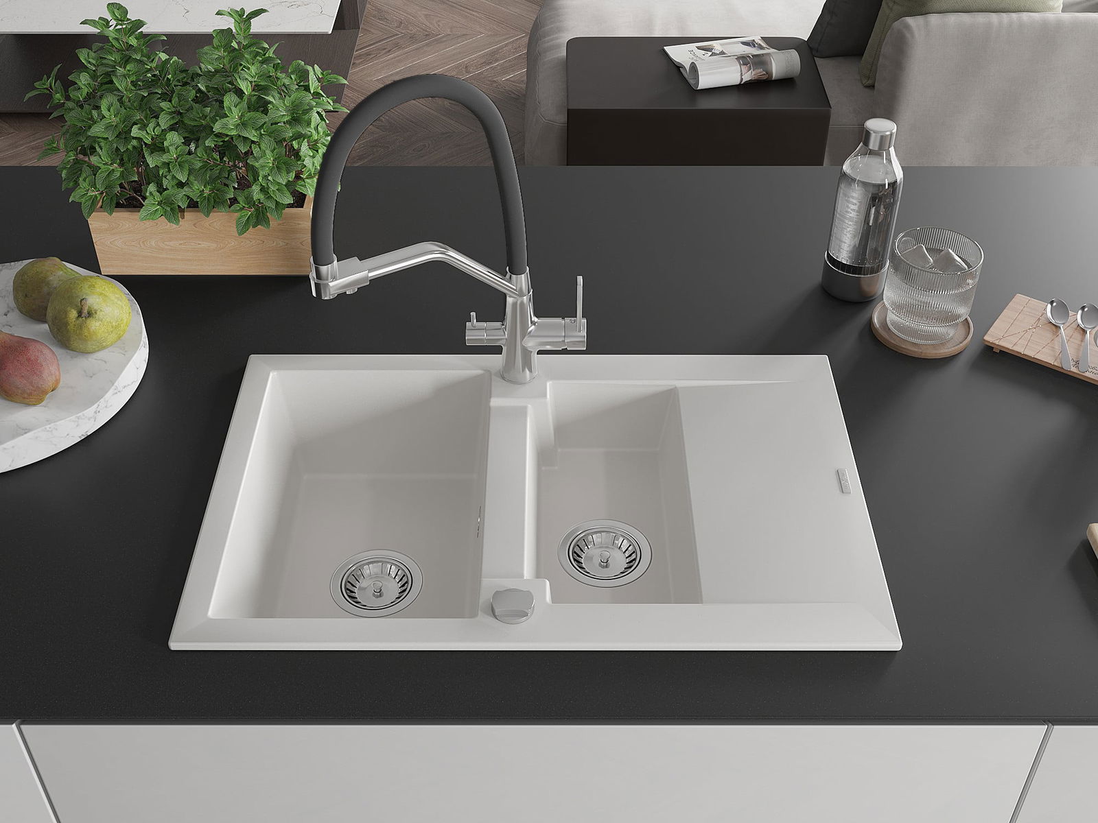 Povrch dřezu je velmi dobře vytvrzený, vyznačuje se výjimečnou odolností proti mechanickému poškození a poškrábání. Trvanlivý materiál umožňuje užívat si dobrý vzhled dřezu po mnoho let používání.