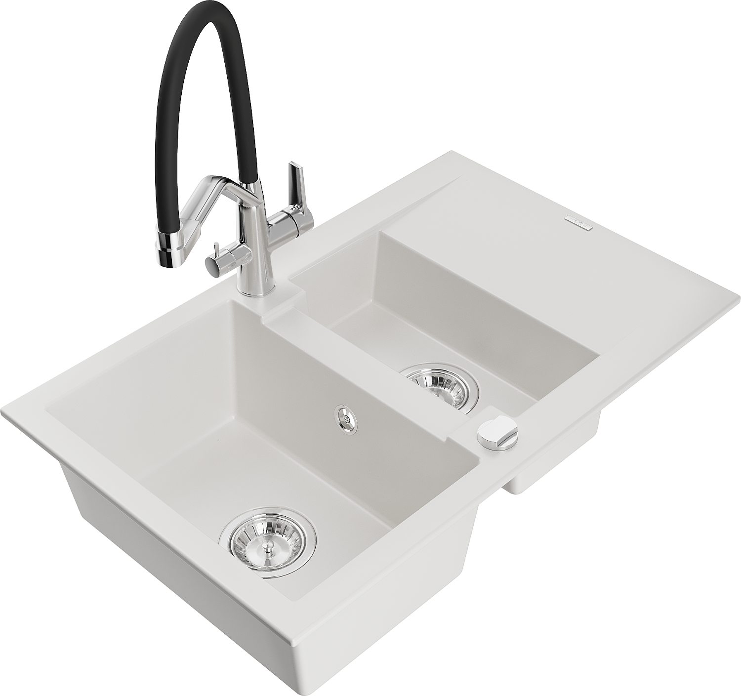 Mexen Gaspar granitový dřez 1,5-komorový s odkapávačem a kuchyňskou baterií Duo, bílý - 6507-20-671701-07