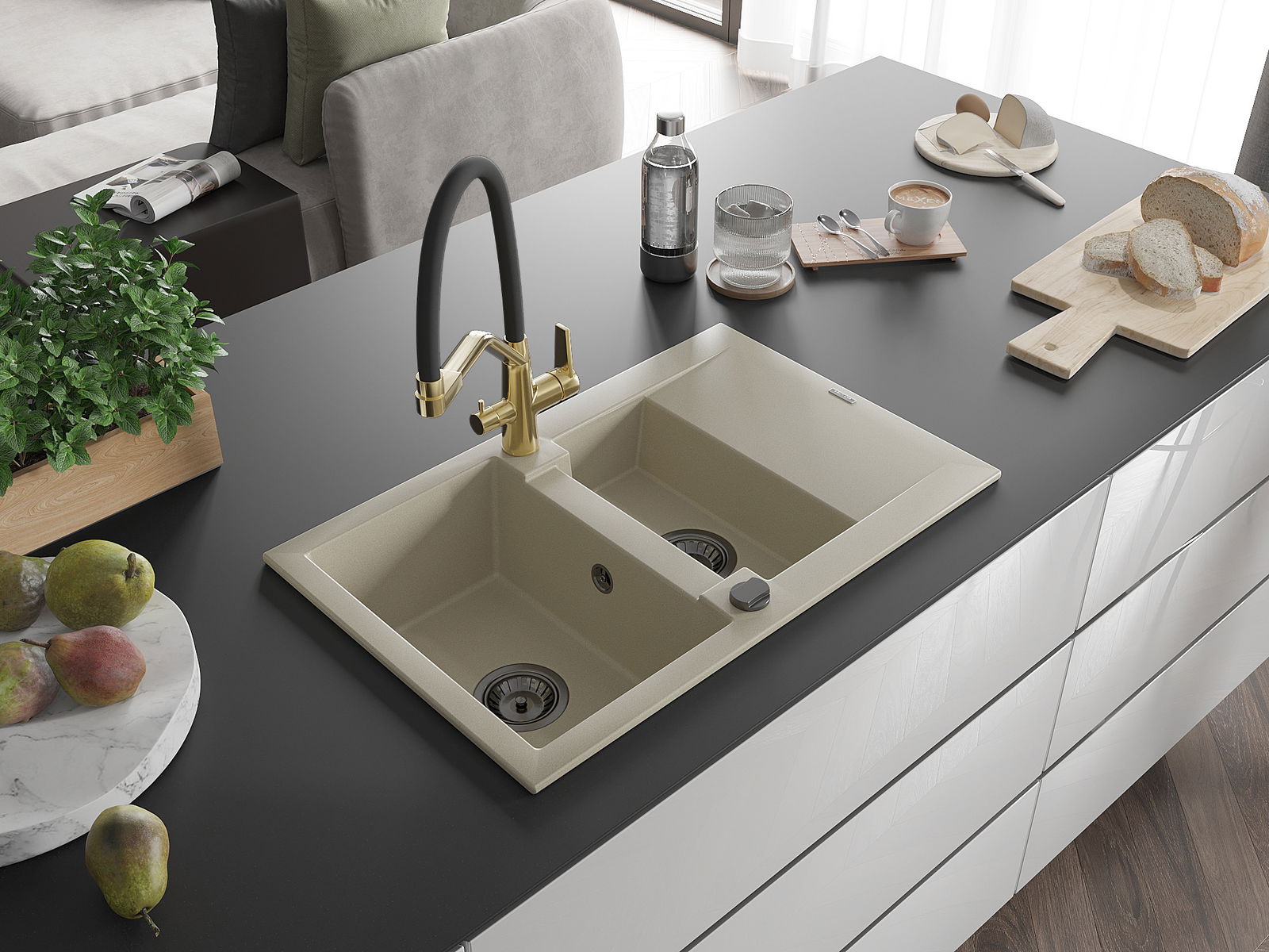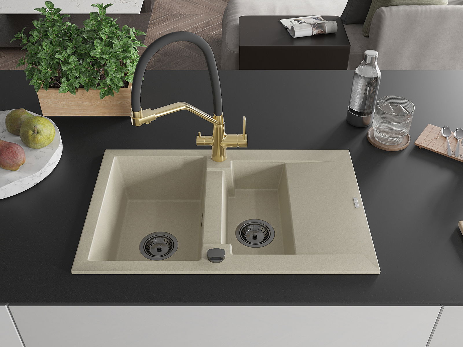 Dřez byl vyroben z vysoce kvalitního granitu. Představuje elegantní a především praktický doplněk každé kuchyně, bez ohledu na její styl. Vysoká kvalita a trvanlivost granitu zajišťují dlouholeté používání.