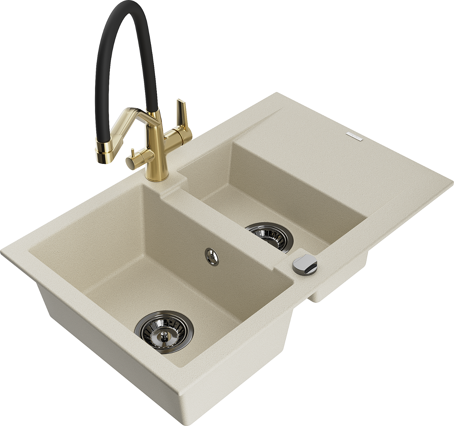 Mexen Gaspar granitový dřez 1,5komorový s odkapávačem a kuchyňskou baterií Duo, béžový - 6507-69-671701-57-B