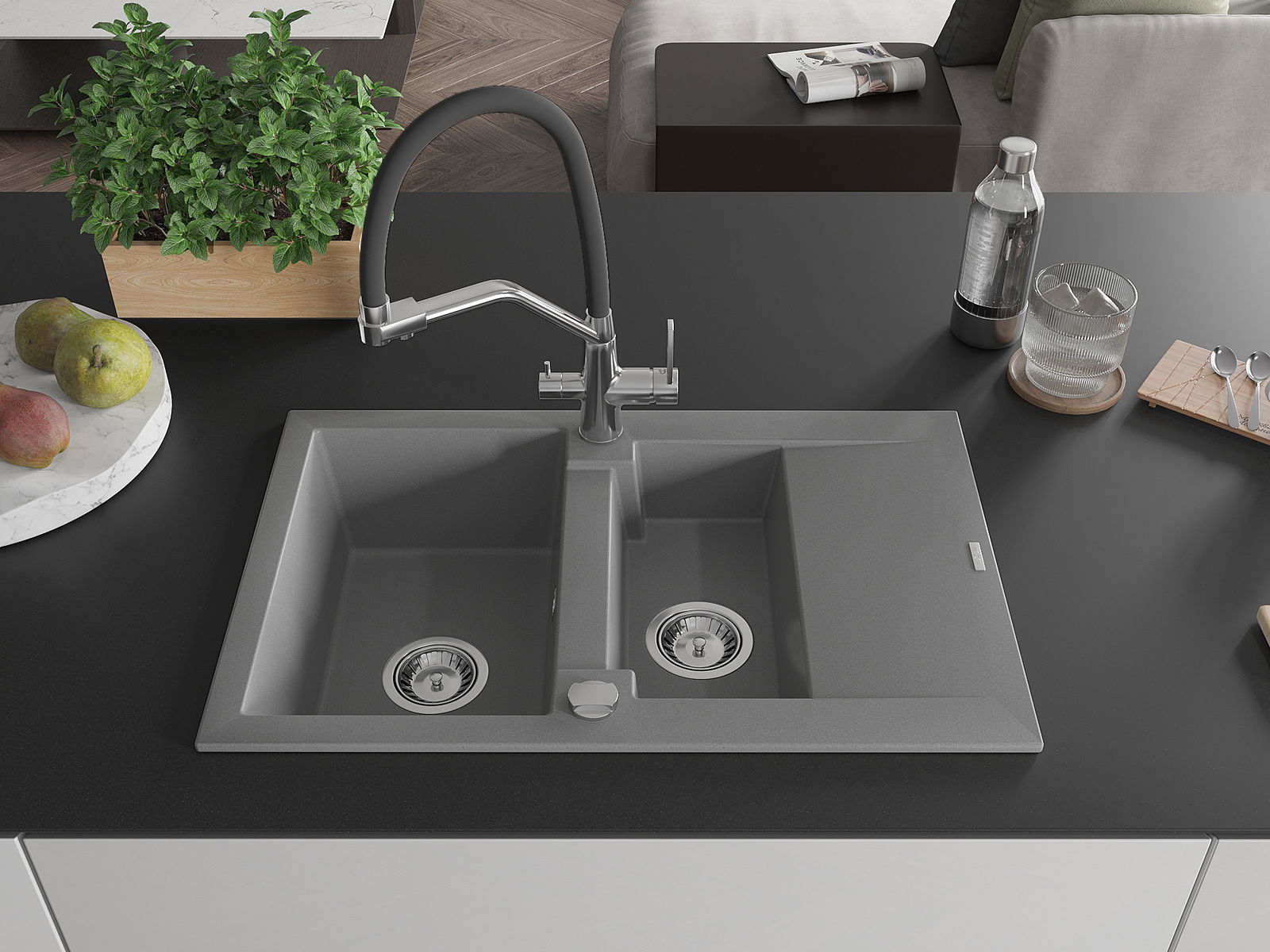 Dřez byl vyroben z vysoce kvalitního granitu. Představuje elegantní a především praktický doplněk každé kuchyně, bez ohledu na její styl. Vysoká kvalita a trvanlivost granitu zajišťují dlouholeté používání.