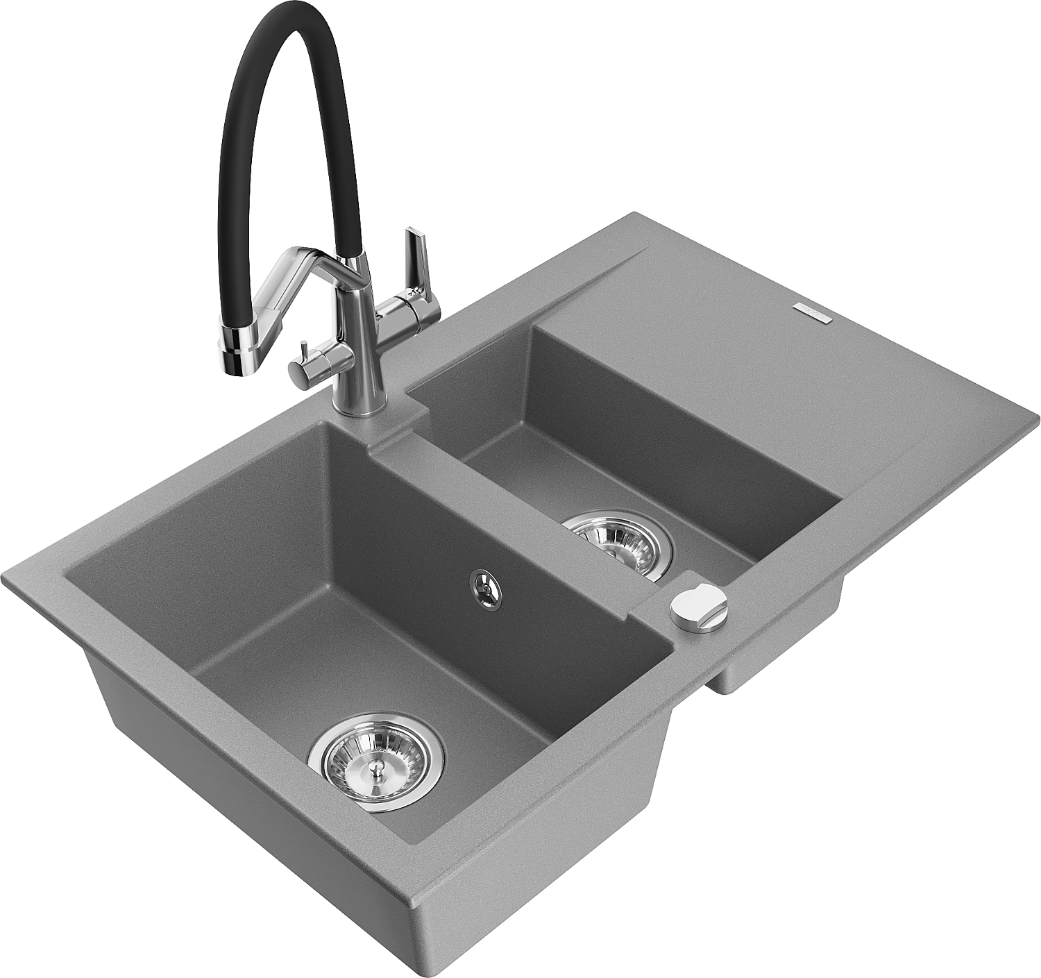 Mexen Gaspar granitový dřez 1,5-komorový s odkapávačem a kuchyňskou baterií Duo, šedý - 6507-71-671701-07