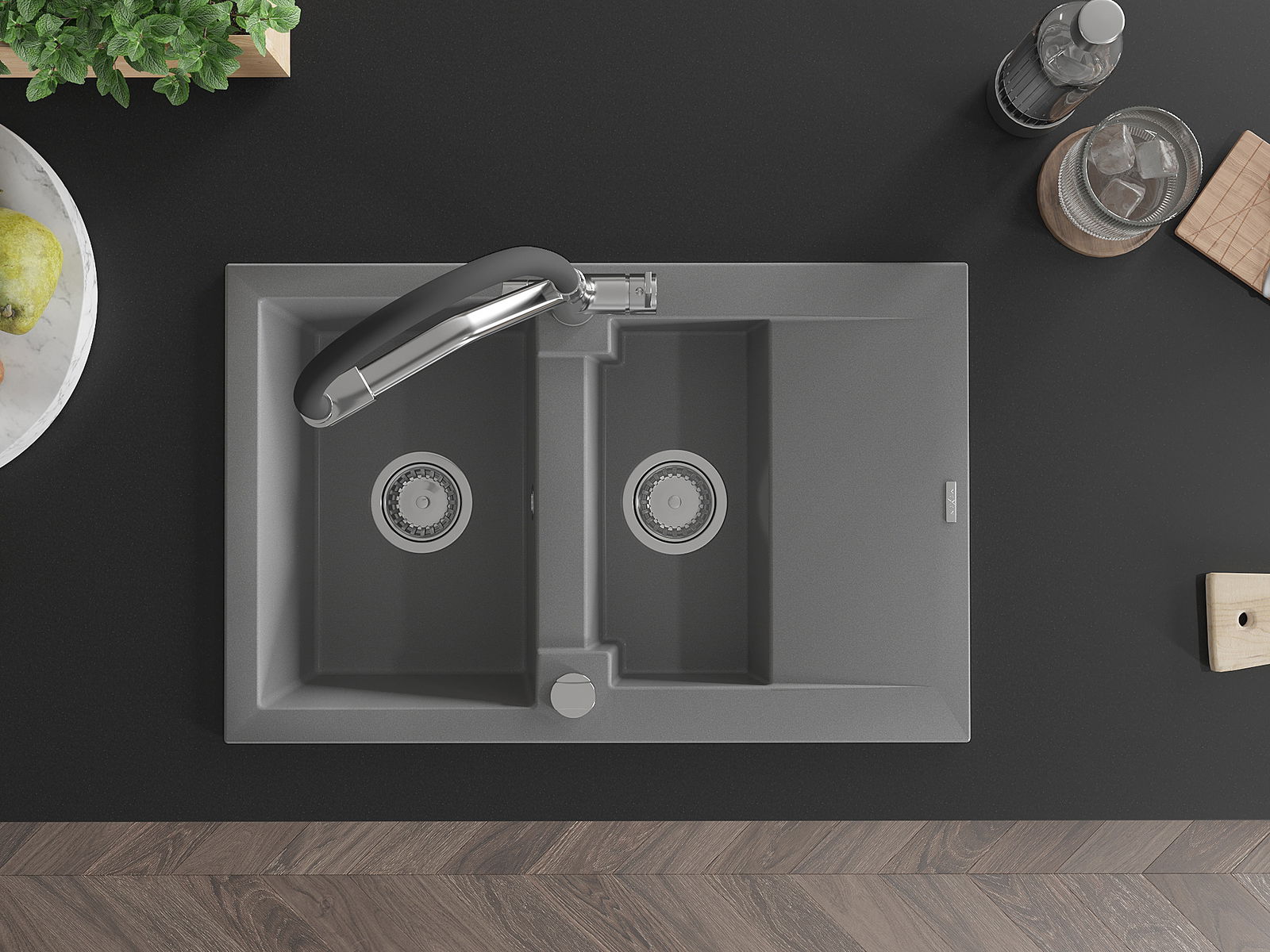 Povrch dřezu je velmi dobře vytvrzený, vyznačuje se výjimečnou odolností proti mechanickému poškození a poškrábání. Trvanlivý materiál umožňuje užívat si dobrý vzhled dřezu po mnoho let používání.