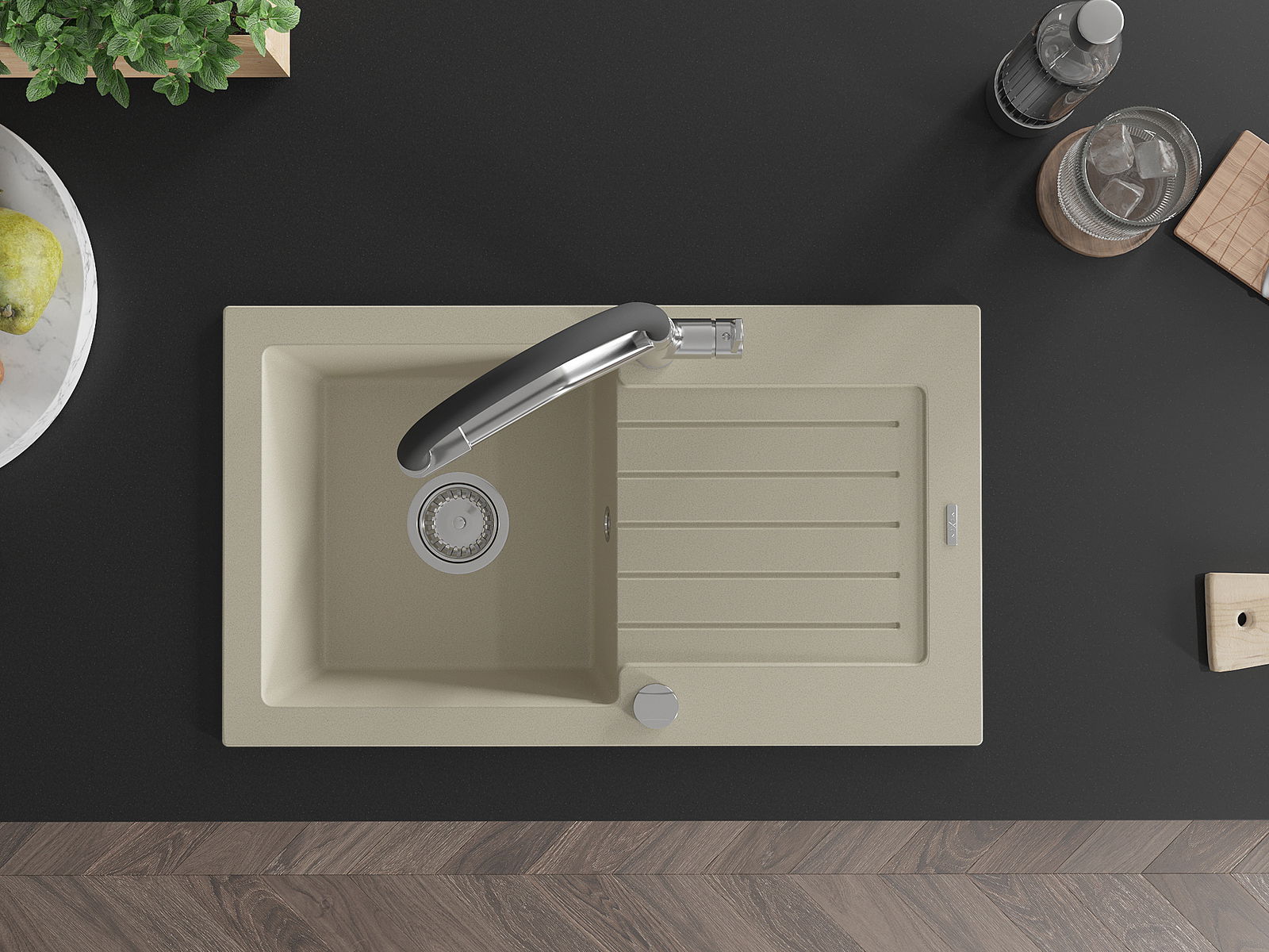 Dřez byl vyroben z vysoce kvalitního granitu. Představuje elegantní a především praktický doplněk každé kuchyně, bez ohledu na její styl. Vysoká kvalita a trvanlivost granitu zajišťují dlouholeté používání.