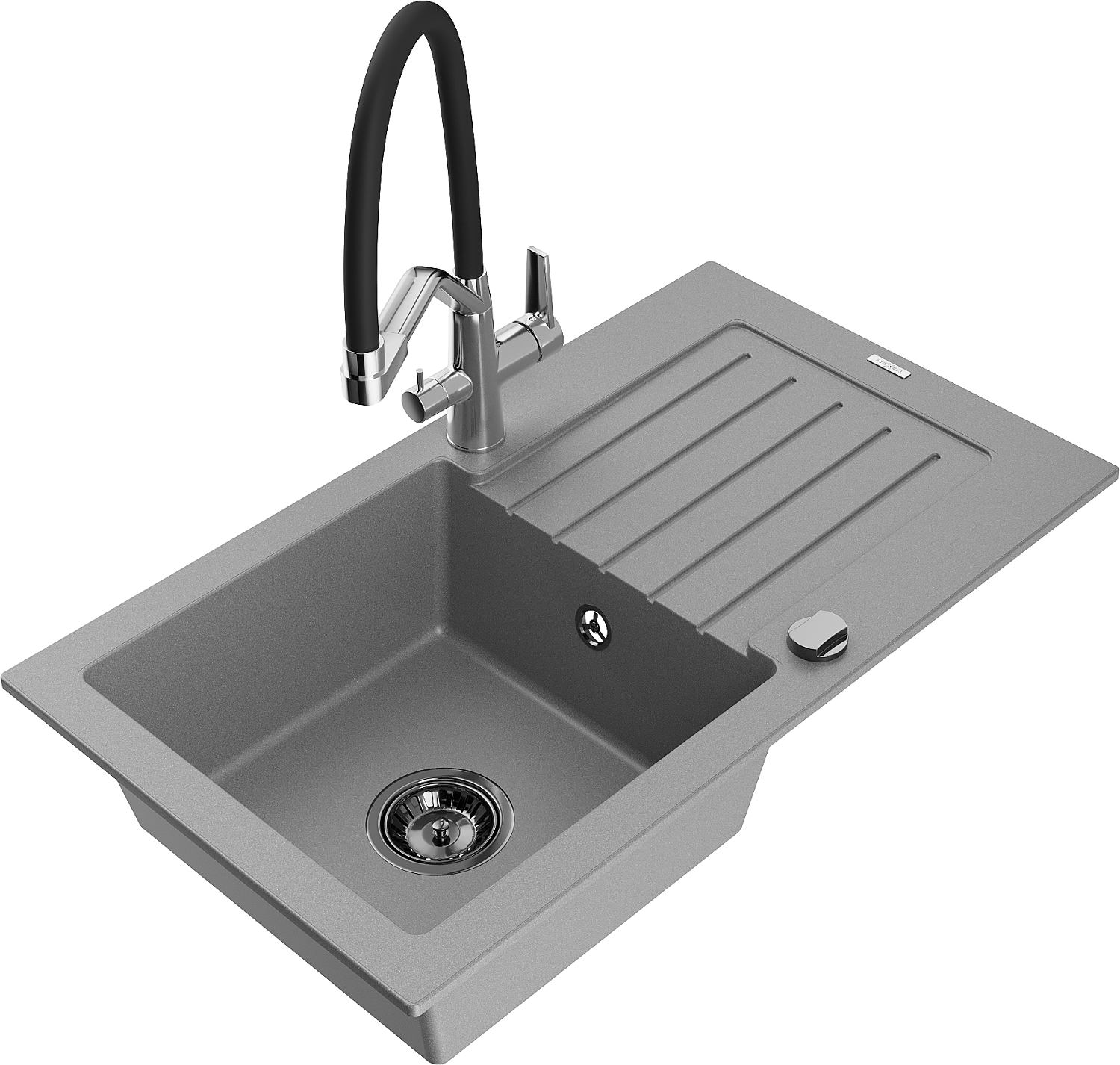 Mexen Pablo granitový jednodřez s odkapávačem a kuchyňskou baterií Duo, šedý - 6510-71-671701-07-B