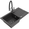 Mexen Pablo žulový dřez s 1 komorou s odkapávačem a kuchyňskou baterií Duo, černá/stříbrná metalíza - 6510-73-671701-07-B