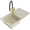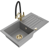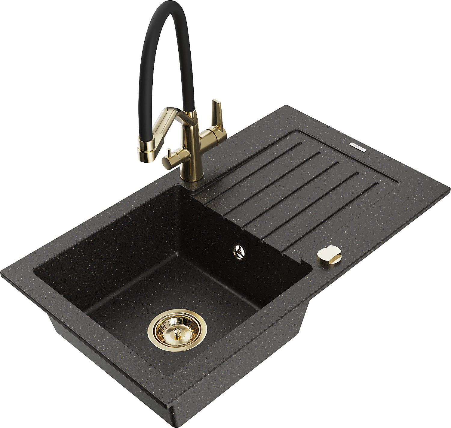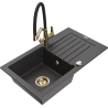 Mexen Pablo granitový dřez 1-komorový s odkapávačem a kuchyňskou baterií Duo, černý/zlatý metalik - 6510-75-671701-57-G