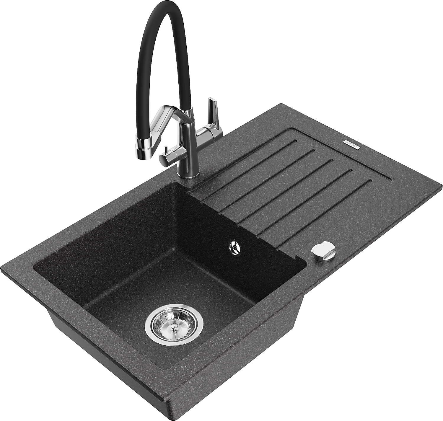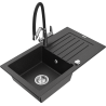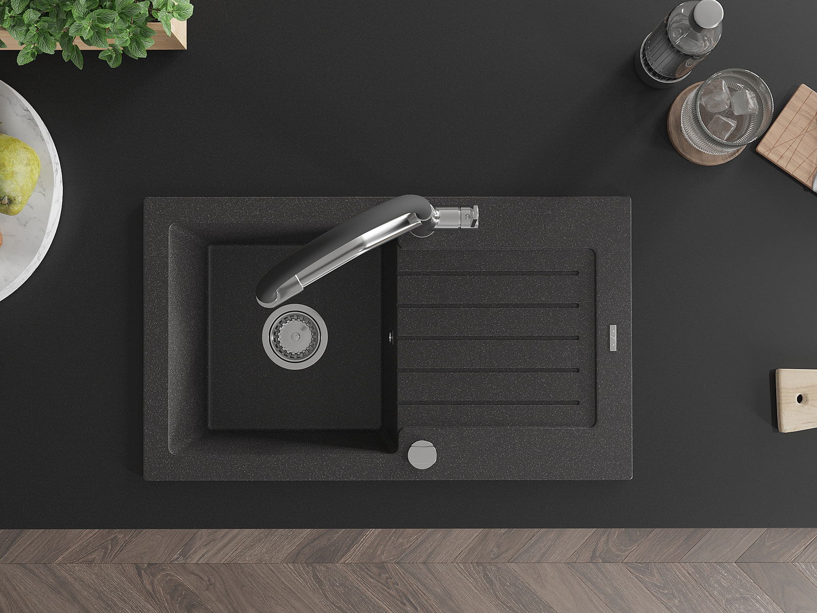 Mexen Pablo granitový dřez 1-komorový s odkapávačem a kuchyňskou baterií Duo, černý tečkovaný - 6510-76-671701-07