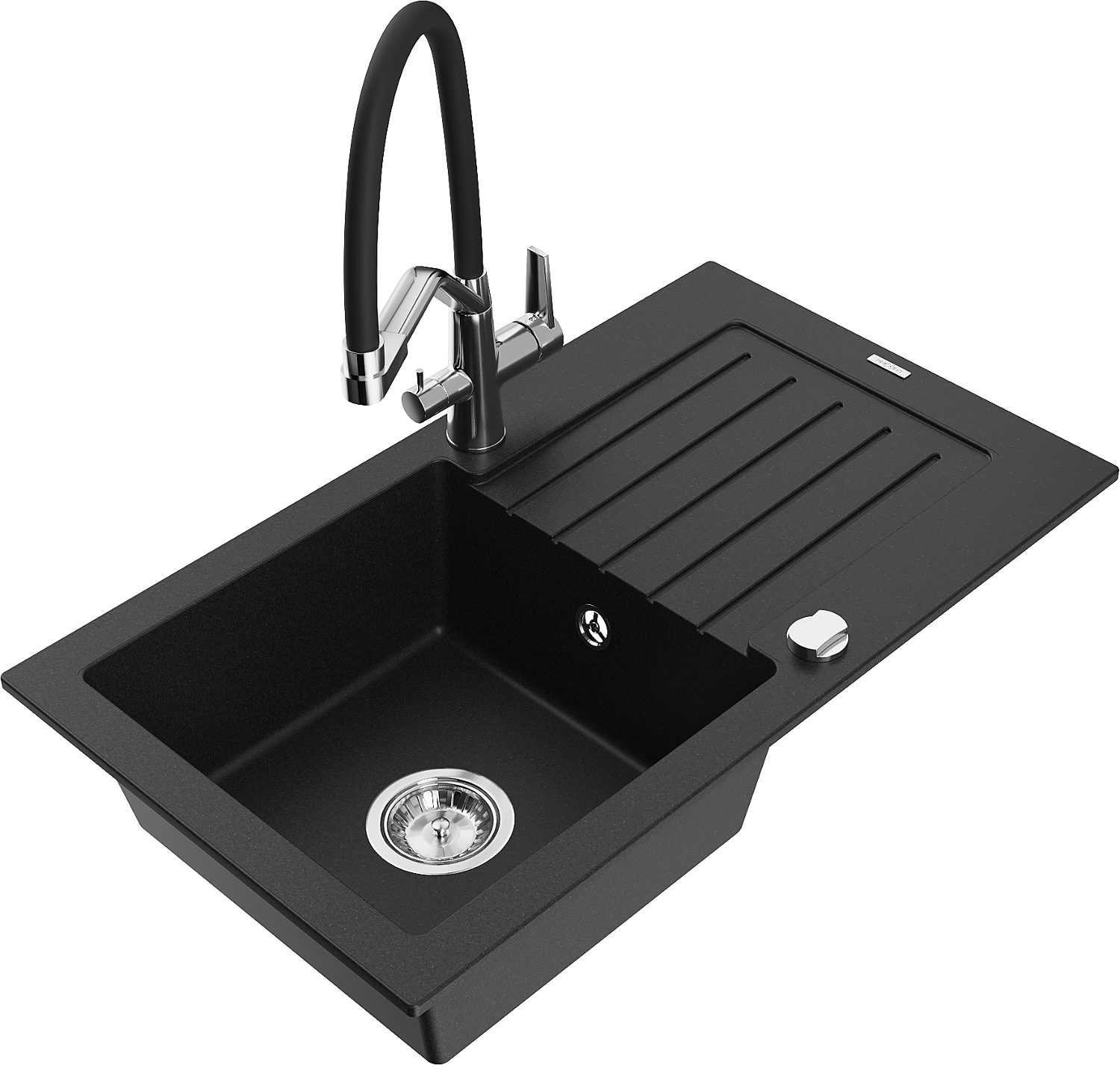 Mexen Pablo žulový dřez 1-komorový s odkapávačem a kuchyňskou baterií Duo, černý - 6510-77-671701-07