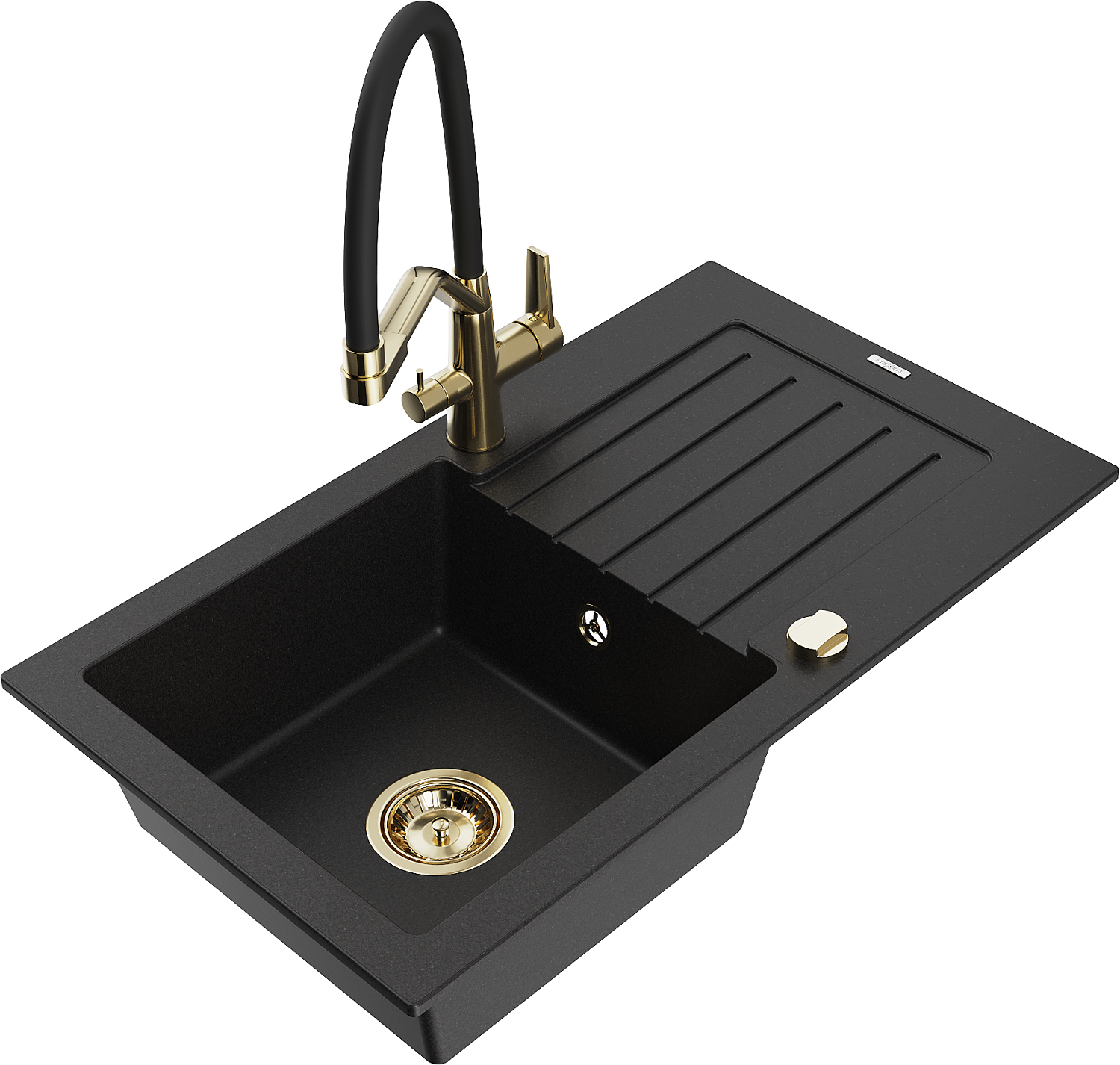 Mexen Pablo žulový kuchyňský dřez s 1 komorou s odkapávačem a kuchyňskou baterií Duo, černý - 6510-77-671701-57-G