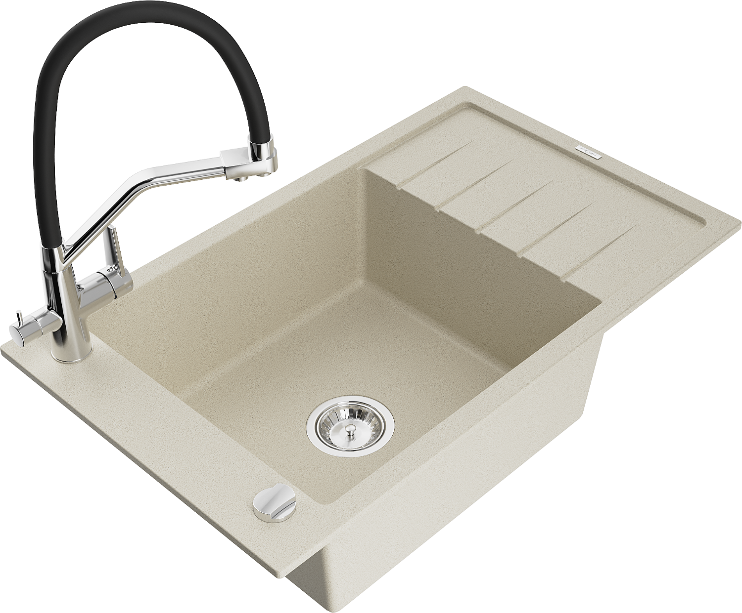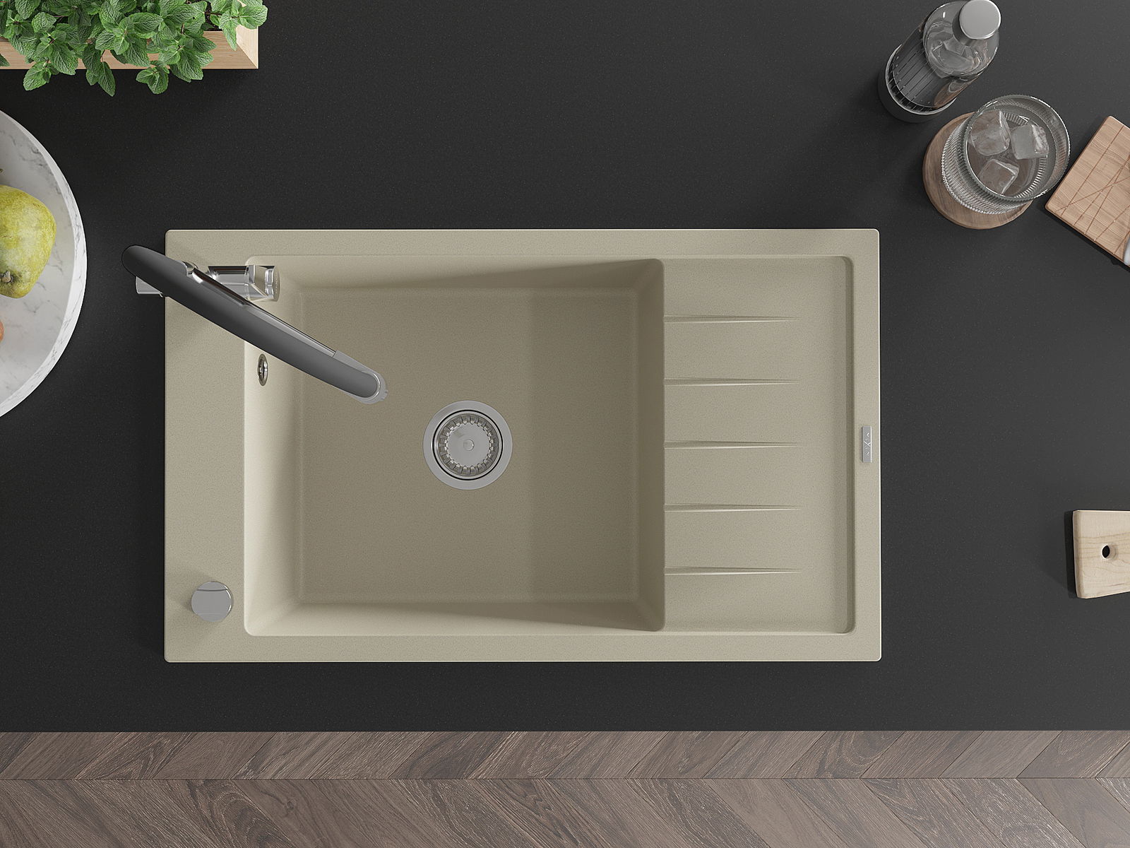 Mexen Elias granitový dřez 1-komorový s odkapávačem a kuchyňskou baterií Duo, béžový - 6511-69-671701-07