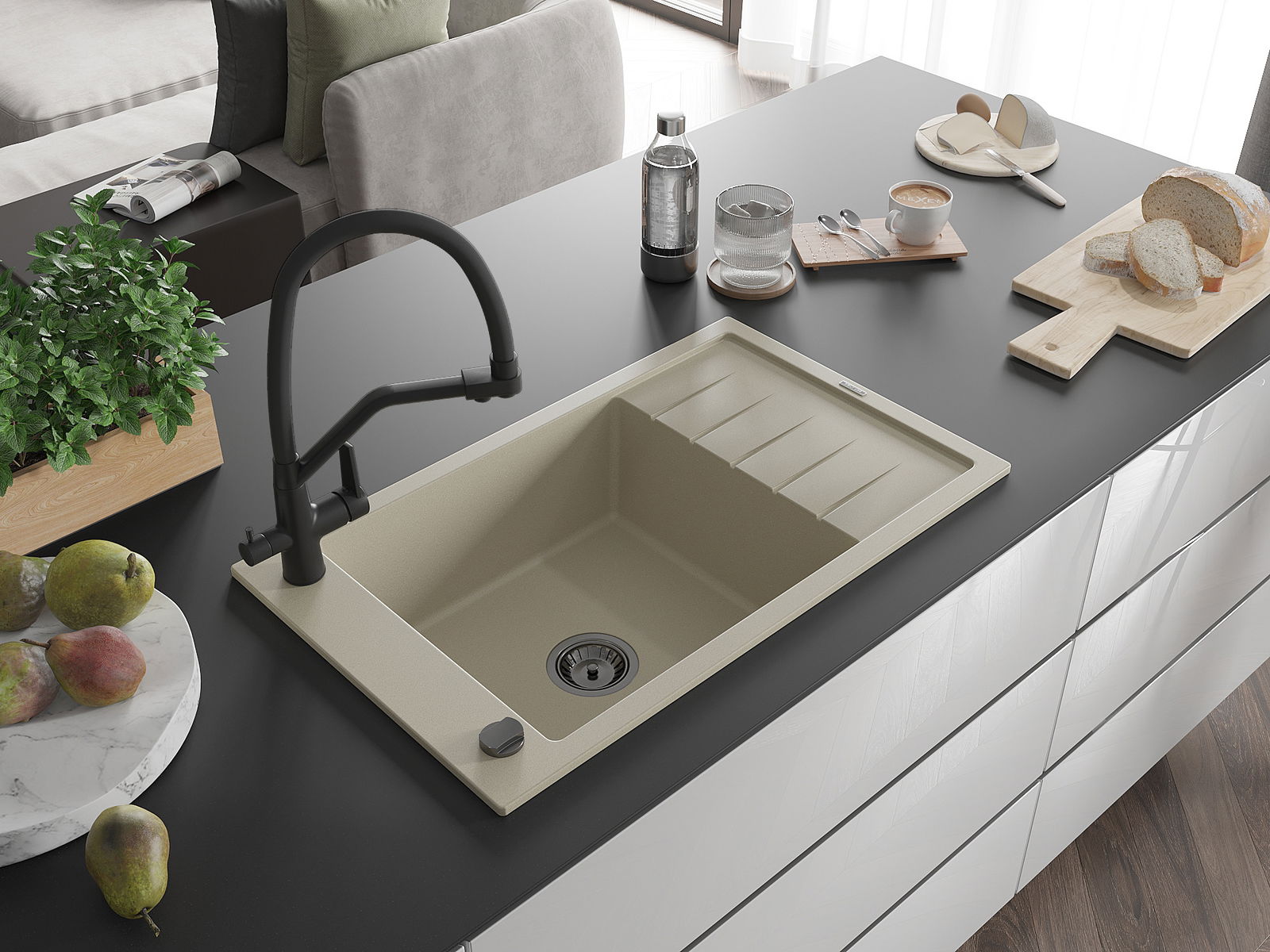 Dřez byl vyroben z vysoce kvalitního granitu. Představuje elegantní a především praktický doplněk každé kuchyně, bez ohledu na její styl. Vysoká kvalita a trvanlivost granitu zajišťují dlouholeté používání.