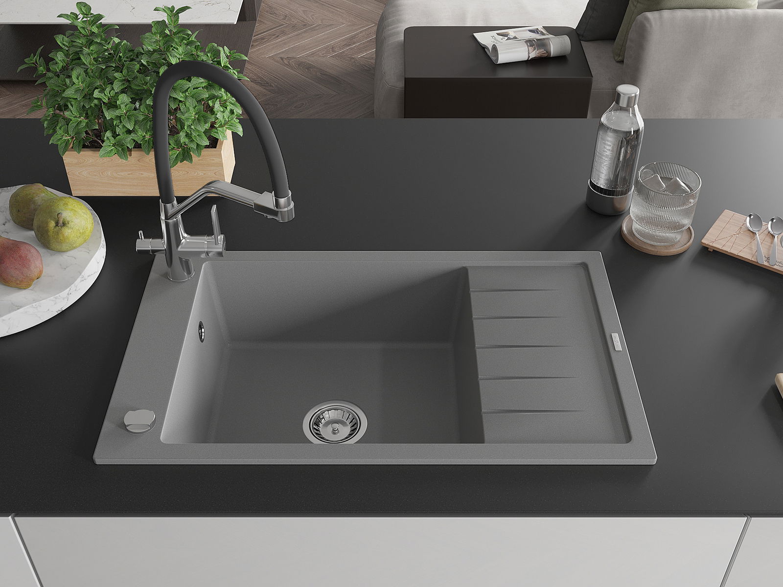 Dřez byl vyroben z vysoce kvalitního granitu. Představuje elegantní a především praktický doplněk každé kuchyně, bez ohledu na její styl. Vysoká kvalita a trvanlivost granitu zajišťují dlouholeté používání.