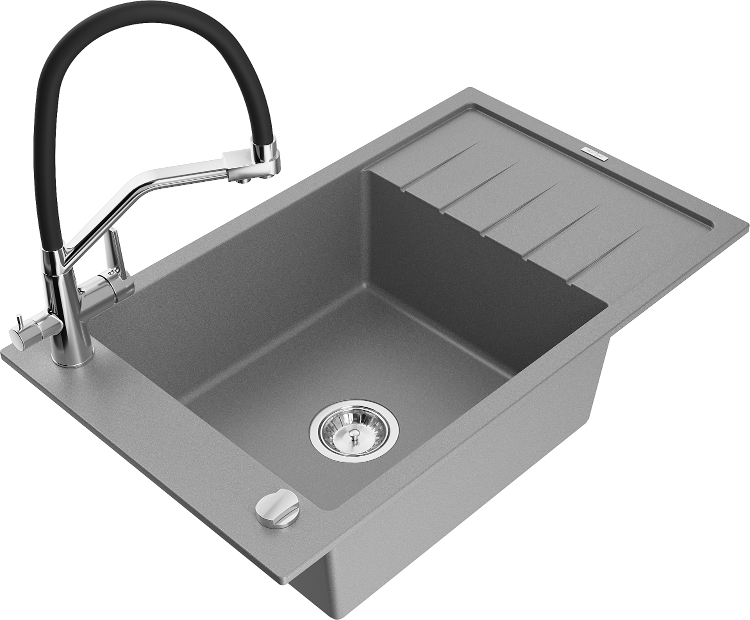 Mexen Elias granitový dřez 1-komorový s odkapávačem a kuchyňskou baterií Duo, šedý - 6511-71-671701-07