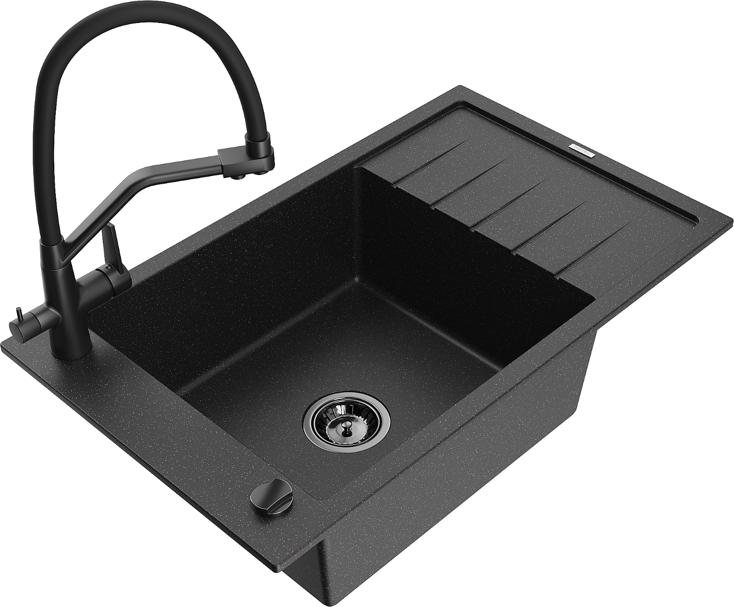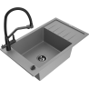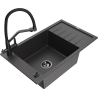 Mexen Elias granitový dřez 1-komorový s odkapávačem a kuchyňskou baterií Duo, černý/stříbrný metalický - 6511-73-671701-70-B