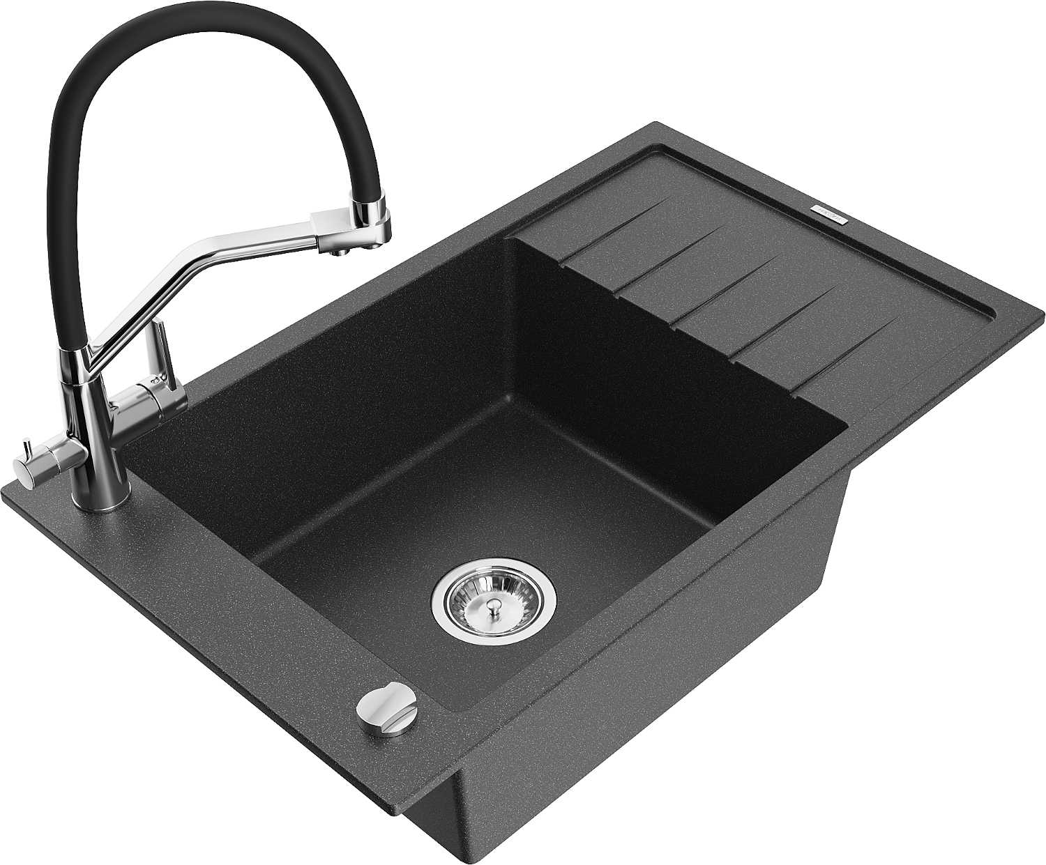 Mexen Elias granitový jednodřez s odkapávačem a kuchyňskou baterií Duo, černý kropenatý - 6511-76-671701-07