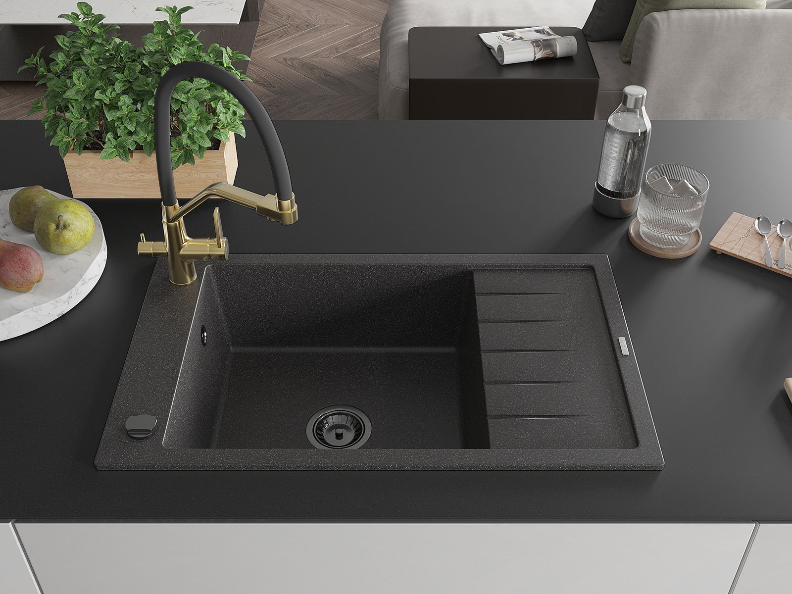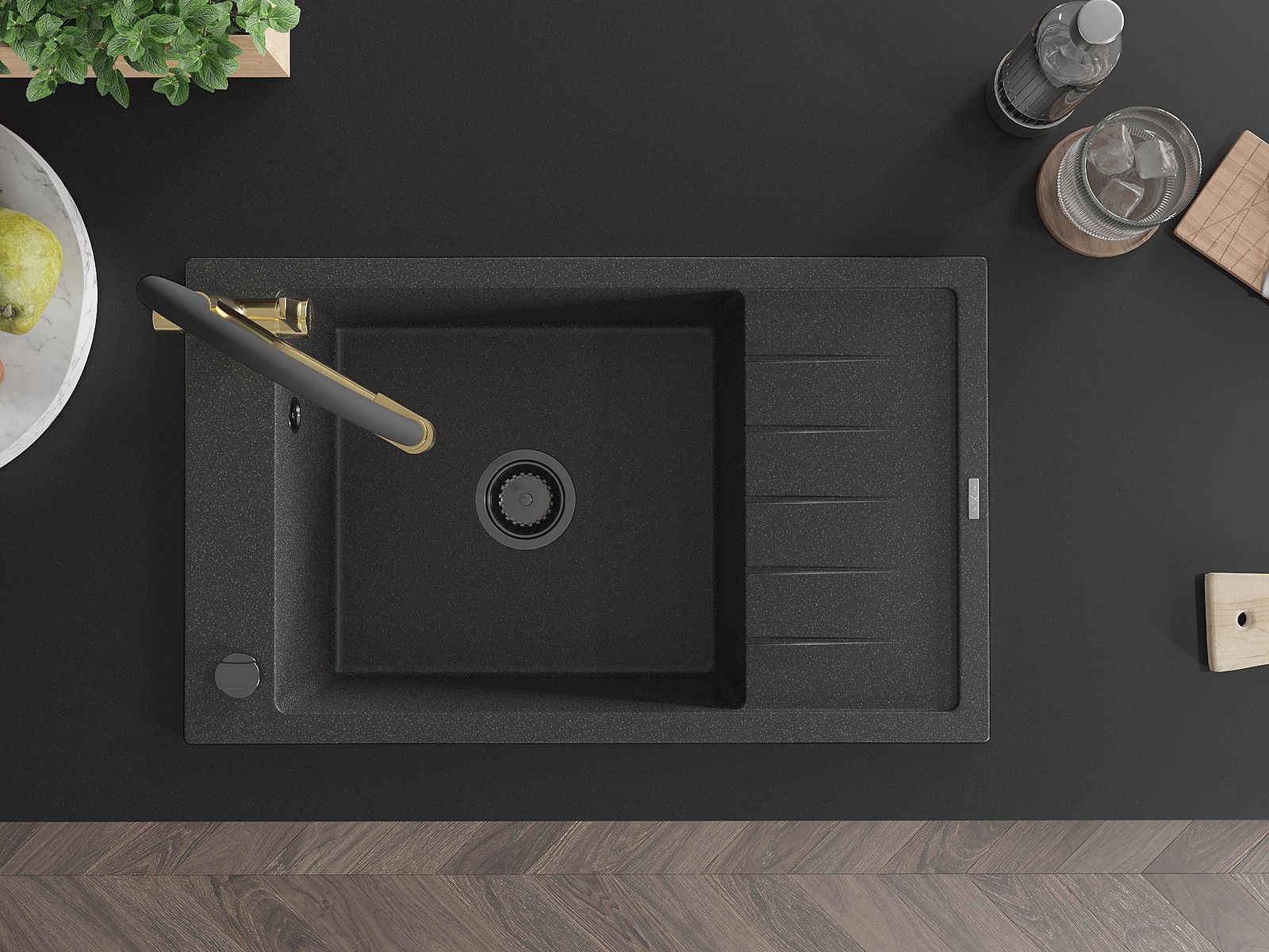 Dřez byl vyroben z vysoce kvalitního granitu. Představuje elegantní a především praktický doplněk každé kuchyně, bez ohledu na její styl. Vysoká kvalita a trvanlivost granitu zajišťují dlouholeté používání.
